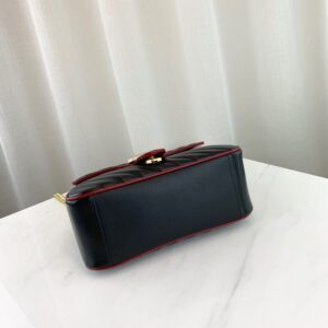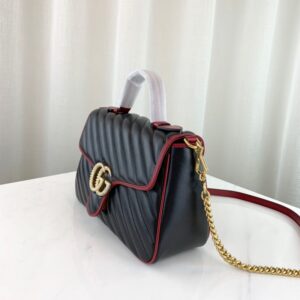 The GG Marmont bag is reimagined for Pre-Fall 2019. made from cognac diagonal matelasse quilted leather and completed with a twisted torchon Double G embellishment. The small top handle’s distinct softly structured shape is outlined in contrast black piping. highlighting its oversized flap closure. A removable chain strap allows the satchel shape to also be worn as a shoulder bag.