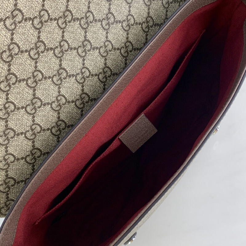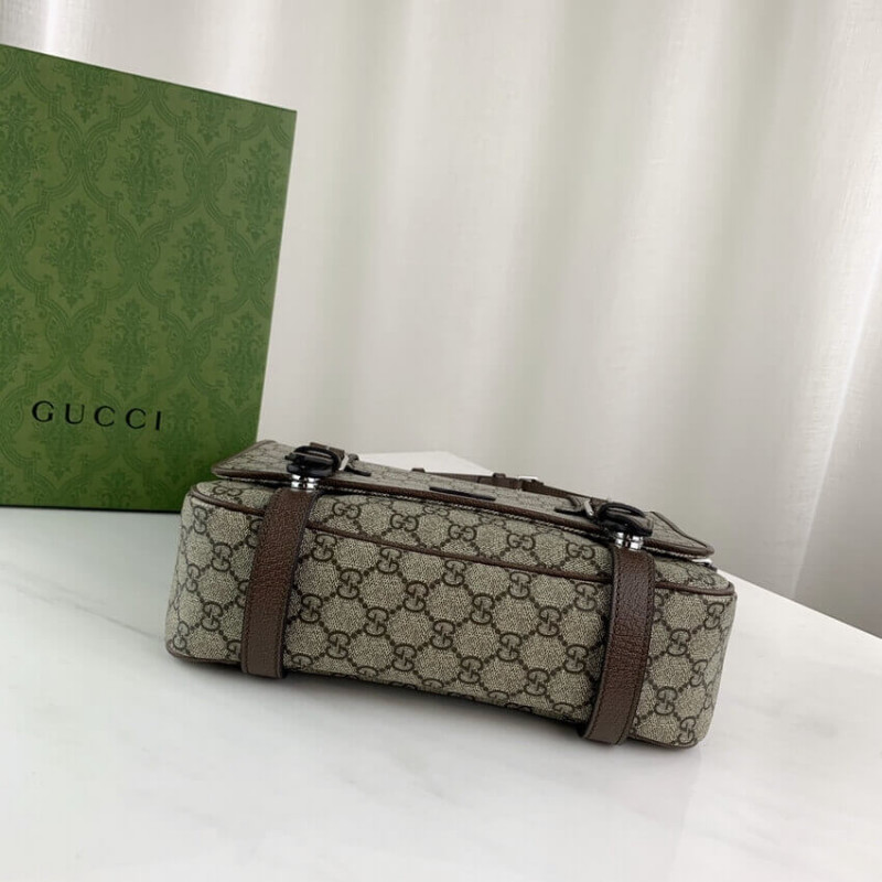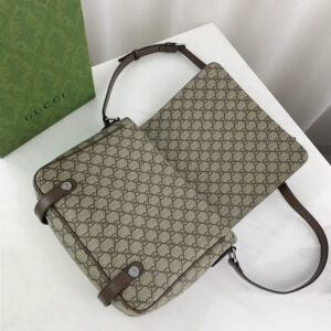 The Gucci GG Messenger Bag 658542 is a stylish and functional bag that captures the original design elements of the first messenger bag. The bag is crafted from the House’s GG Supreme canvas. which is an emblematic monogram of Guccio Gucci. The canvas is beige/ebony and is a material with low environmental impact. The bag also features brown leather trim. which adds to its overall aesthetic appeal.