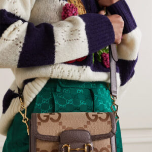 Instantly recognizable emblems of the brand, logos enrich designs in new and unexpected ways. Behind every logo lies the tradition and value of the House, an everlasting medium one can wear again and again. Following the idea of constant change and experimentation, different iterations of the logo have been presented each collection. The jumbo GG, a reimagined version of the historic monogram, defines this Gucci Horsebit 1955 mini bag.