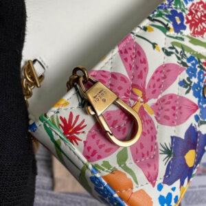 A bright botanical print by Ken Scott animates this mini shoulder bag. Nicknamed the ‘Fashion Gardener.’ Ken Scott was an American designer who lived in Milan in the ’60s and ’70s and whose colorful floral drawings were reflective of his eclectic personality. The GG Marmont super mini bag is completed by its signature monogram hardware.