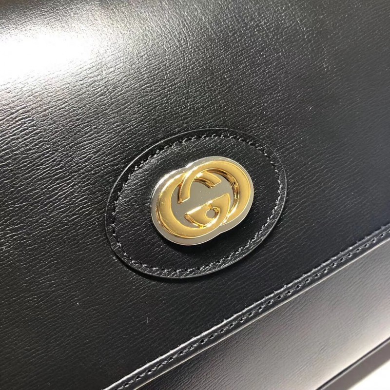Defined by the Marina chain strap. this beige and black leather shoulder bag is specially treated for a textured. vintage effect. The compact shape is finished with a gold-toned Interlocking G set on a silver-toned plaque??a detail that defines the line. The sliding strap lends a multifunctional element to the style. worn as a shoulder strap or doubled to create a top handle.