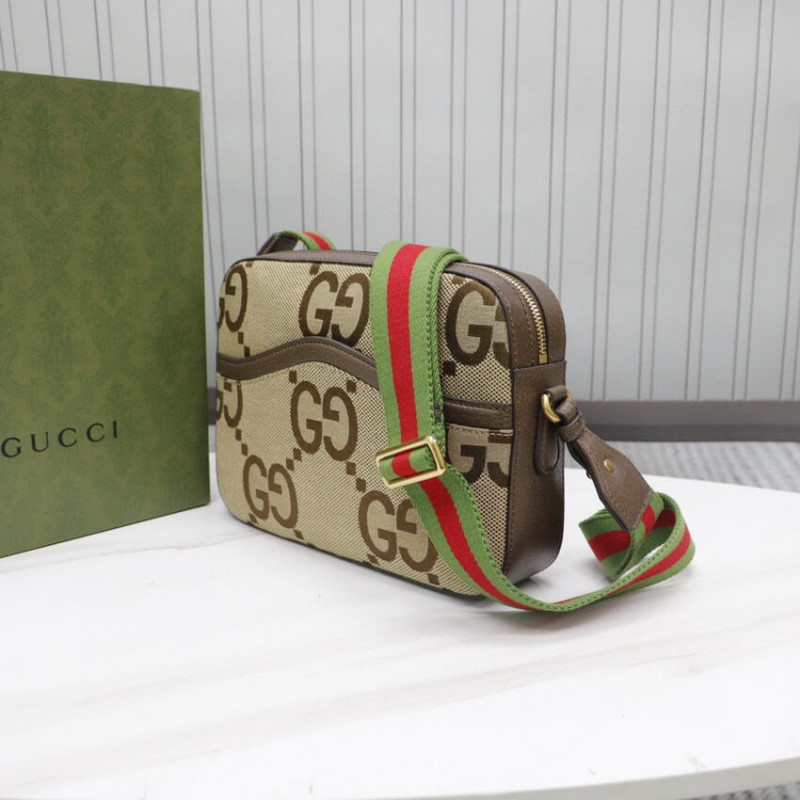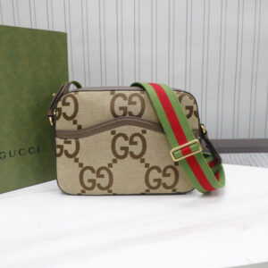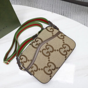 The Interlocking G has remained one of the most symbolic codes of the House since its introduction. The distinguishing emblem appears as a leather detail atop this messenger bag. Completing the design’s logo feel. the style is crafted from monogram canvas with the GG motif appearing in a maximalist. jumbo-sized version.
