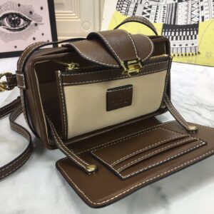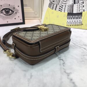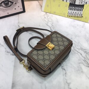 The Gucci Mini bag with clasp closure is a versatile and functional accessory that can be carried at the wrist or worn as a shoulder bag. It is made of beige/ebony GG Supreme canvas. a material with low environmental impact. and features brown leather trim. The interior of the bag includes two card slots and one zipper pocket. providing ample space for your essentials. The bag also comes with a detachable wrist strap with an 11.5cm drop and a detachable and adjustable shoulder strap with a 55cm drop. allowing you to wear it in different ways. The Gucci engraved clasp closure adds a touch of elegance to the bag. Inspired by vintage trunks and travel accessories. the GG Supreme mini bag has a squared shape and is finished with a logo engraved metal buckle. The GG logo was first used in the 1970s and has since become an established symbol of Gucci’s heritage. The functional design of the bag is completed with interior card slots and a zippered pouch. This mini bag is a perfect example of Gucci’s commitment to creating pieces with versatile ways to wear and style. embracing each person who is part of the House’s individual spirit. The dimensions of the bag are W18cm x H10.5cm x D6.5cm.
