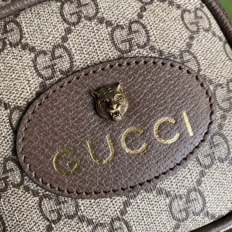 – Oval Gucci leather tag with feline head