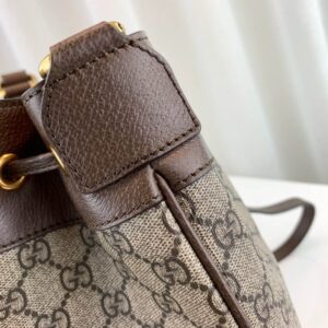 A drawstring shoulder bag with a bucket shape made in soft GG Supreme makes for a multi-functional addition in the world of Ophidia. Trimmed in brown leather. the accessory is defined by the green and red Web stripe inlaid at the bottom. Completed with an extra strap. that can be attached to the original one to emphasize the length. this bag can also be worn across the body.
