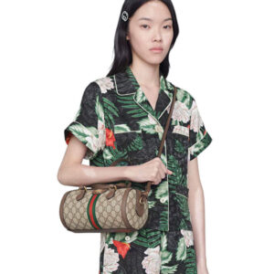 A classic combination of the House’s most defining codes??the GG motif and Web stripe??the world of Ophidia continues to evolve. incorporating new shapes and silhouettes each season. With recognizable design elements in a top handle shape. the Boston bag is trimmed with textured leather and topped with Double G hardware.