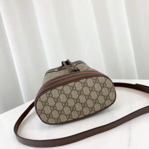 The world of Ophidia evolves with the introduction of a new bucket bag shape. Crafted in GG Supreme canvas with inlaid green and red Web stripe along the bottom. The accessory is completed with a single top handle and detachable shoulder strap for two different ways to wear it.