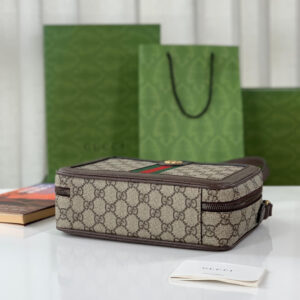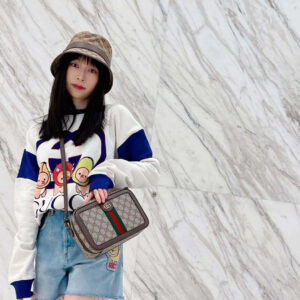 The Ophidia line continues to be one of Gucci signature handbags. New silhouettes are introduced each season, providing versatile travel accessories to suit any destination. The Double G and Web stripe remain integral to the design, presented atop this shoulder bag alongside the signature GG Supreme canvas in beige and ebony.