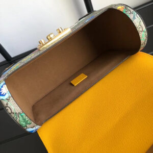 A special collection combines two of the House’s most distinctive designs into an unexpected and contemporary fabric, animating classic silhouettes like the Padlock bamboo top handle shoulder bag. The historic Flora motif, first presented by Vittorio Accornero more than 50 years ago, is layered over the House monogram and trimmed with bright yellow leather for a modern take on the two archival patterns.