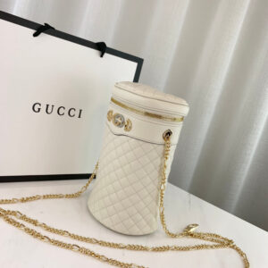 The evolution of the belt bag continues with a new shape for Spring Summer 2019. In an elongated design reminiscent of a bottle carrier. the quilted leather pouch is completed with the Interlocking G Horsebit. Detachable chain straps allow the style to be worn as a belt bag. a shoulder bag or used as a pouch.