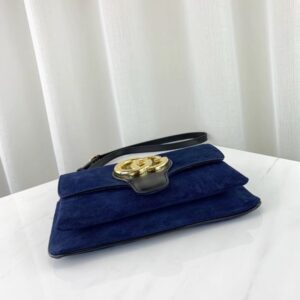 Brought back from the 1970s archives. the Double G hardware defines a new line of shoulder bags. The oversize emblem decorates the exaggerated flap closure of a small shoulder bag. The silhouette has a vintage feel with an adjustable shoulder strap. crafted in black leather with a rich softness and shiny look. The accessory was first presented in the Cruise 2019 collection. revealed in the evocative setting of the Promenade des Alyscamps. an ancient Roman necropolis in the French town of Arles??which gives the name to the line.