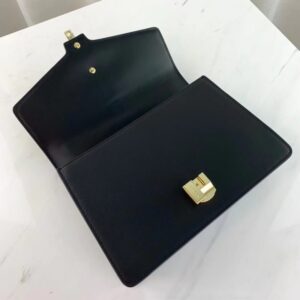 A playful mix of House codes. the Sylvie shoulder bag combines a gold metal chain and buckle with contrasting Web stripe details. The signature Gucci shape from the ’60s and ’70s is brought back from the archives in a modern iteration that can be mixed-and-matched with different straps and worn in a number of ways. The structured silhouette comes with two straps: one leather shoulder strap and one grosgrain ribbon that converts from top handle to shoulder. For an additional way to wear it. a coordinating leather crossbody strap was specially designed and is available separately.