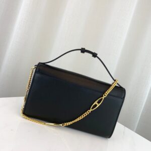 – Detachable Marina chain shoulder strap with 21.6″ drop secures with a button closure at the interior flap