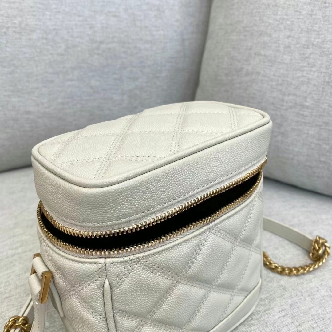 Saint Laurent 80’s Vanity Bag In White Quilted Grained Leather