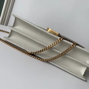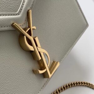 Saint Laurent Cassandra Clasp Bag In Blanc Grained Leather