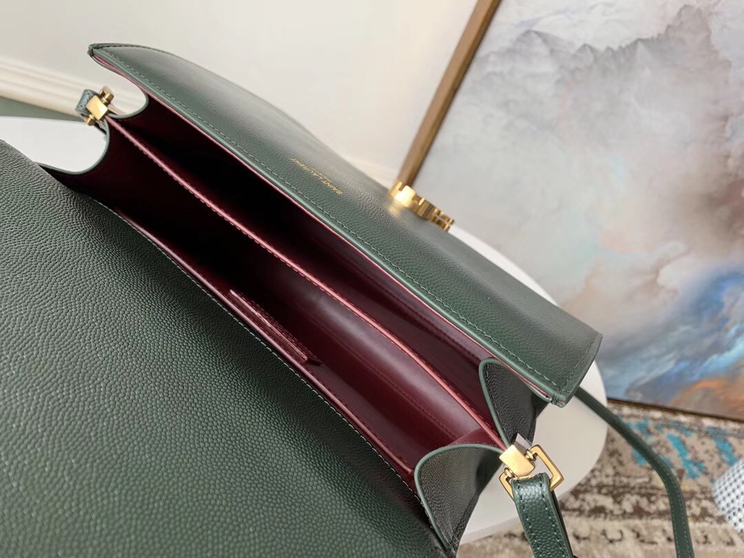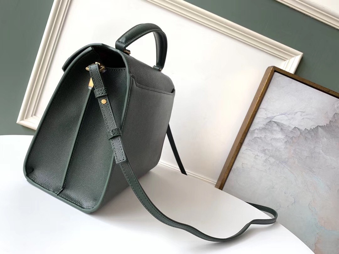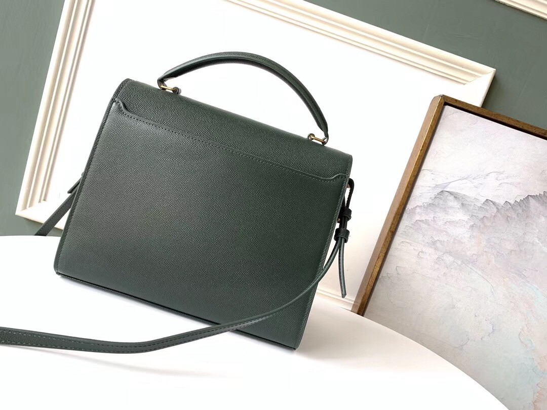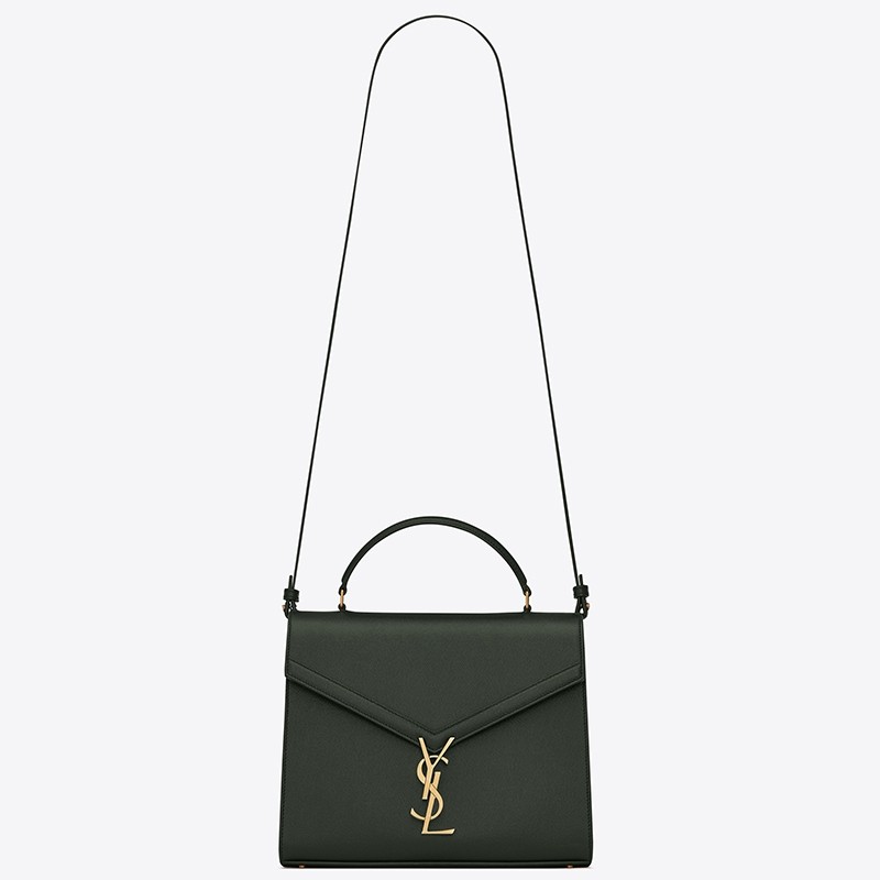Saint Laurent Cassandra Medium Bag In Dark Green Grained Leather