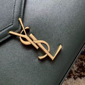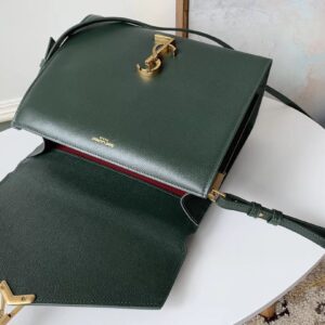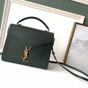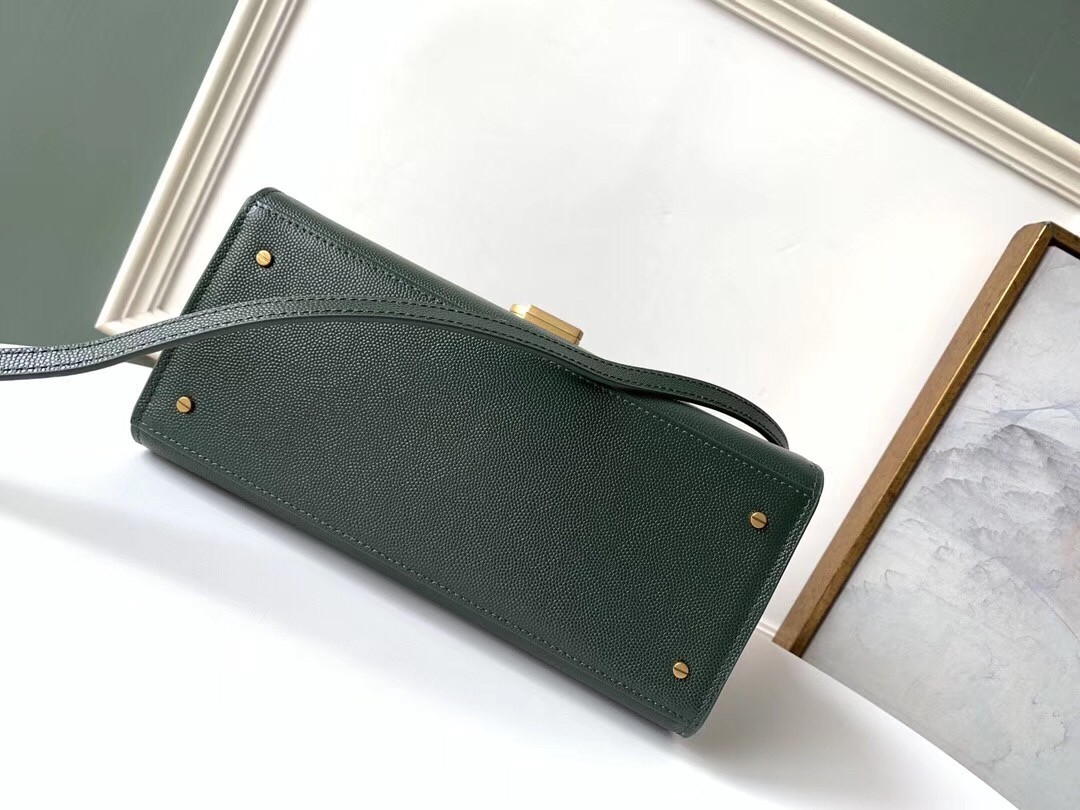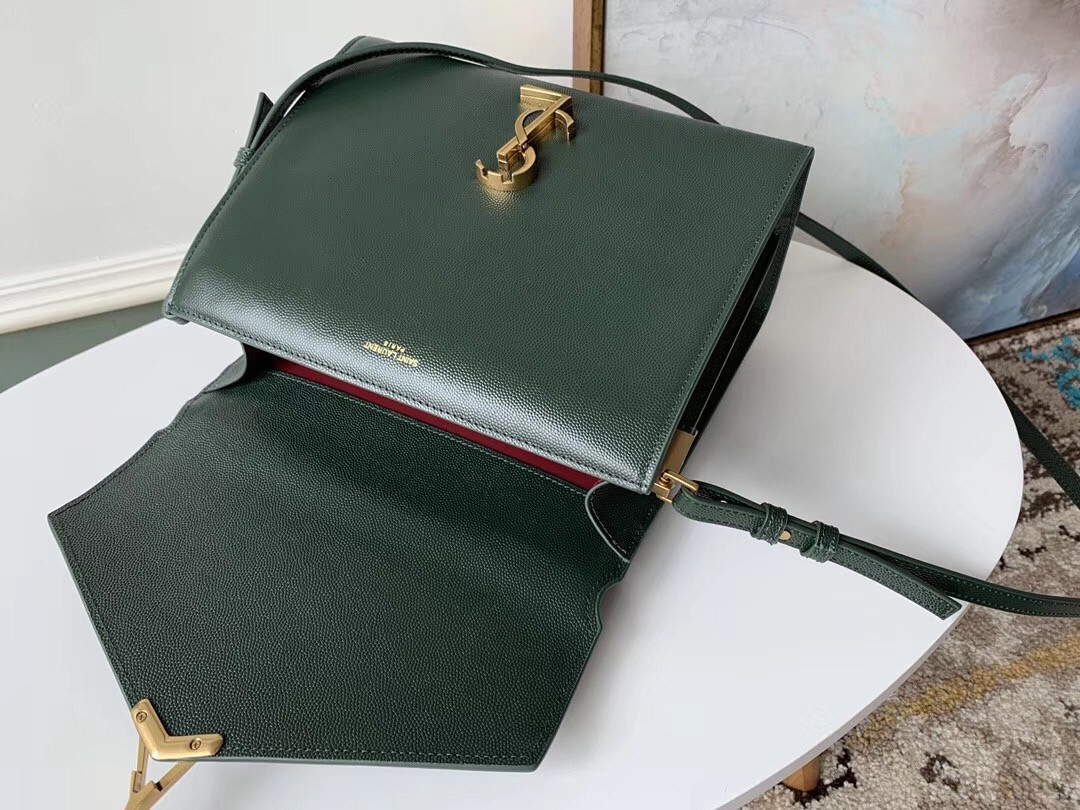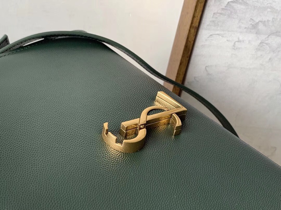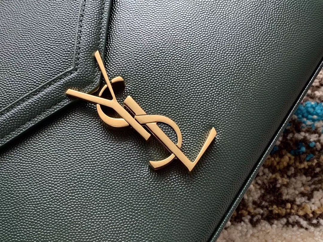 Saint Laurent Cassandra Medium Bag In Dark Green Grained Leather