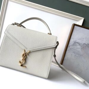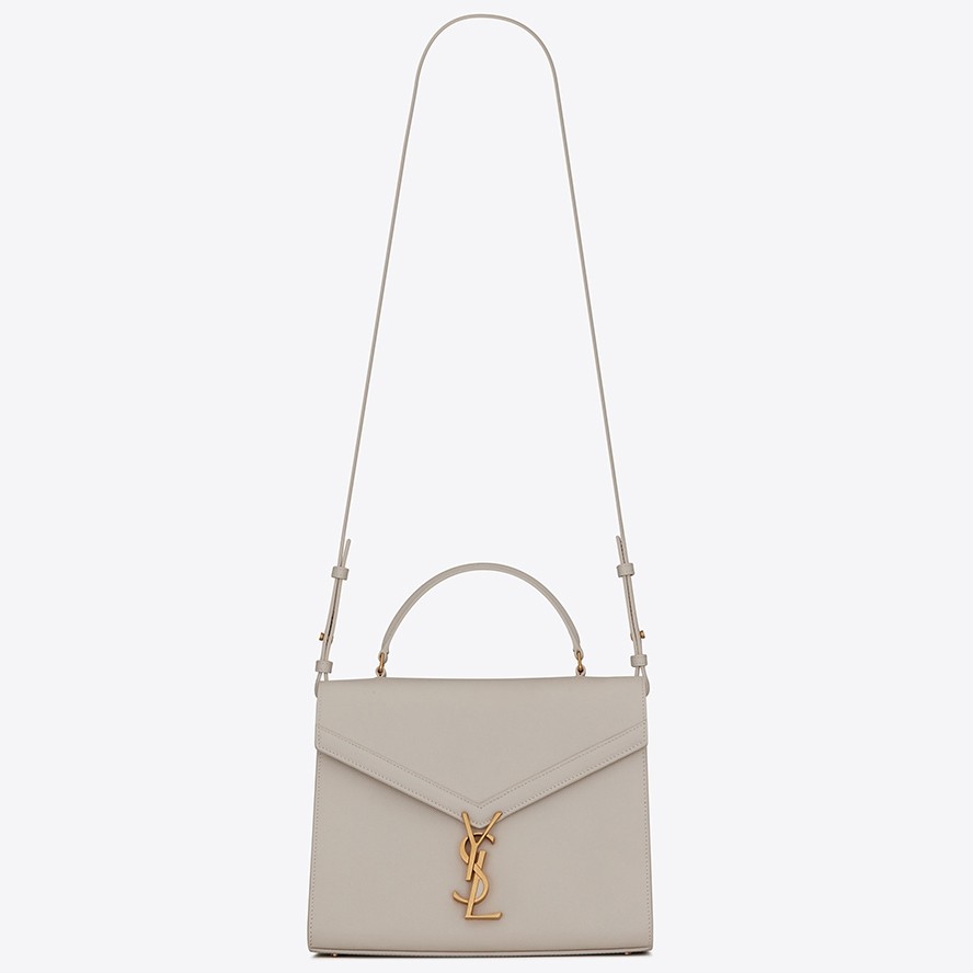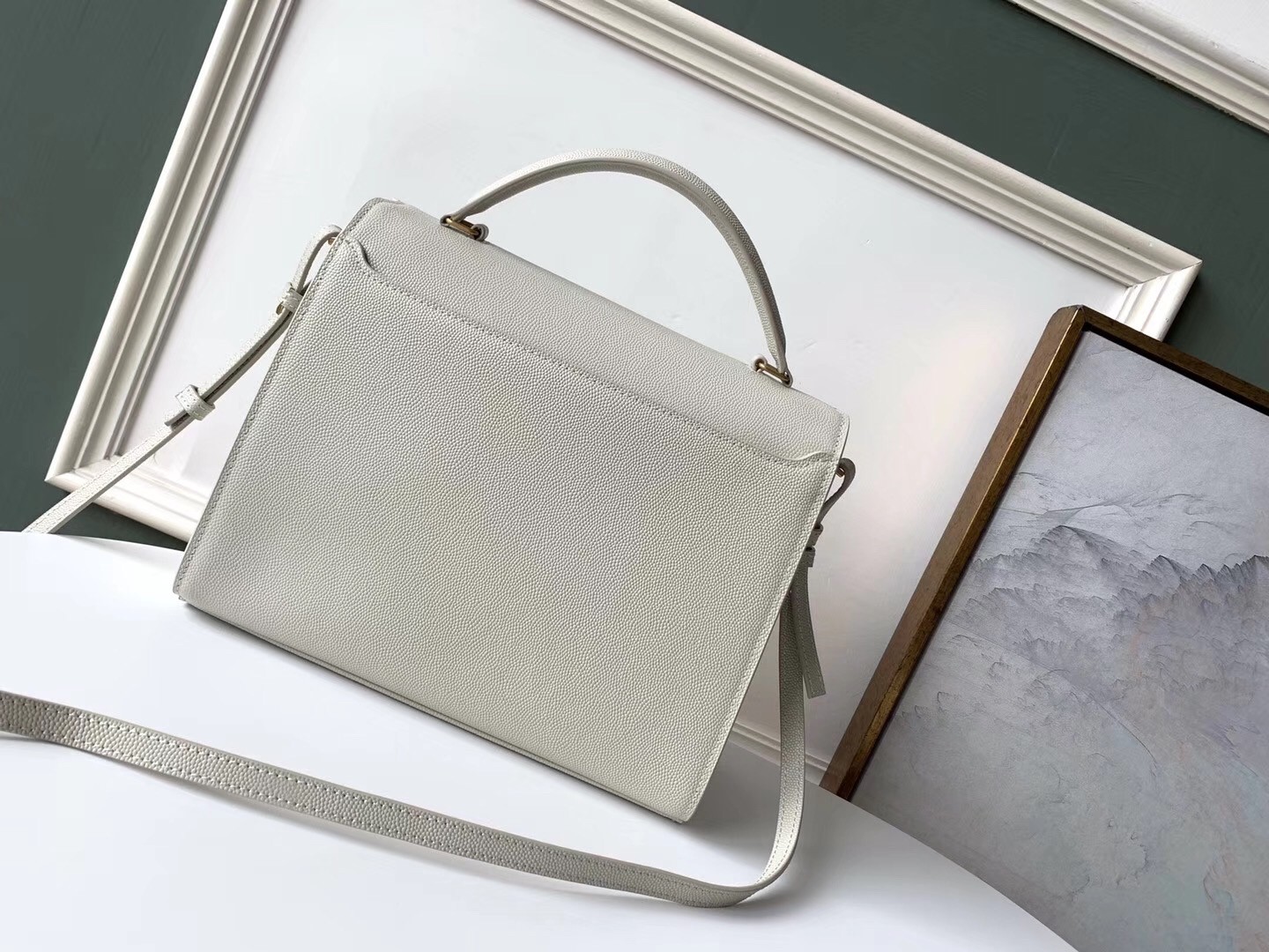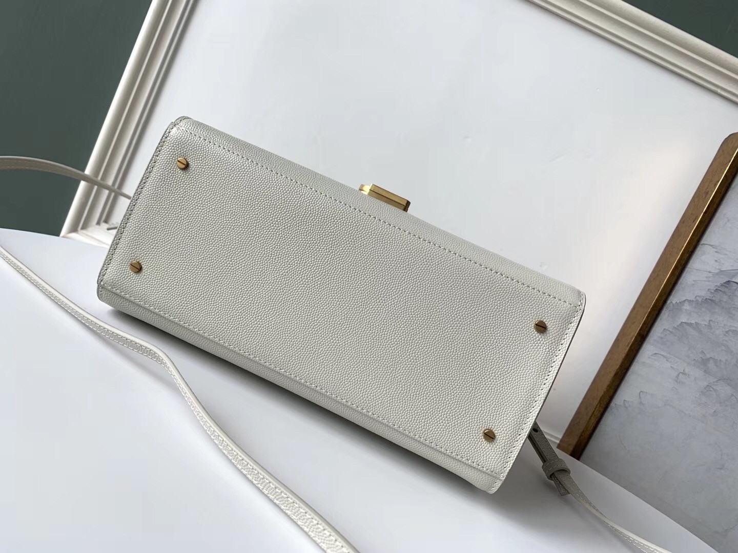 Saint Laurent Cassandra Medium Bag In White Grained Leather