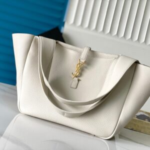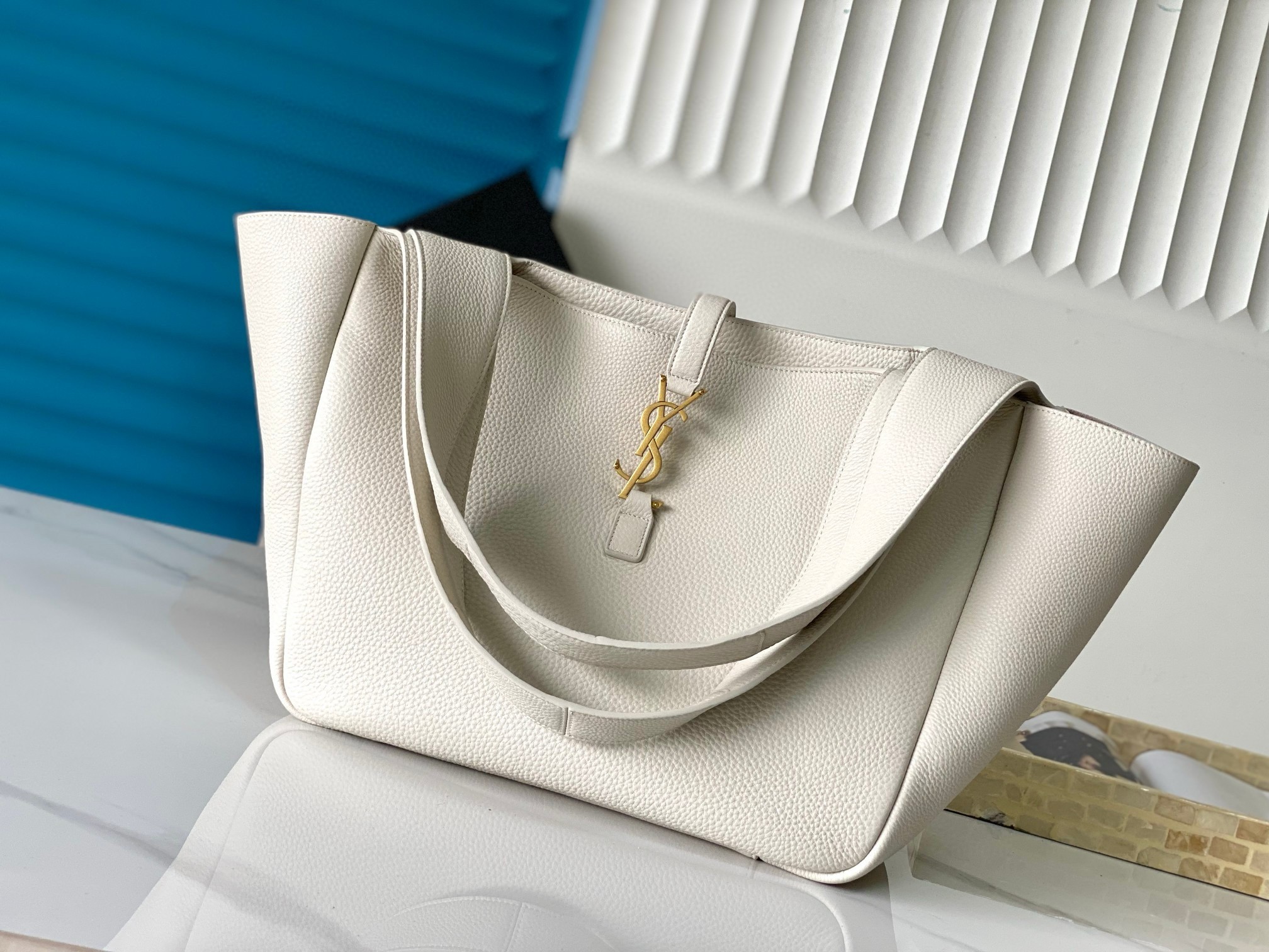 Saint Laurent LE 5 A 7 Bea Tote Bag in White Grained Leather