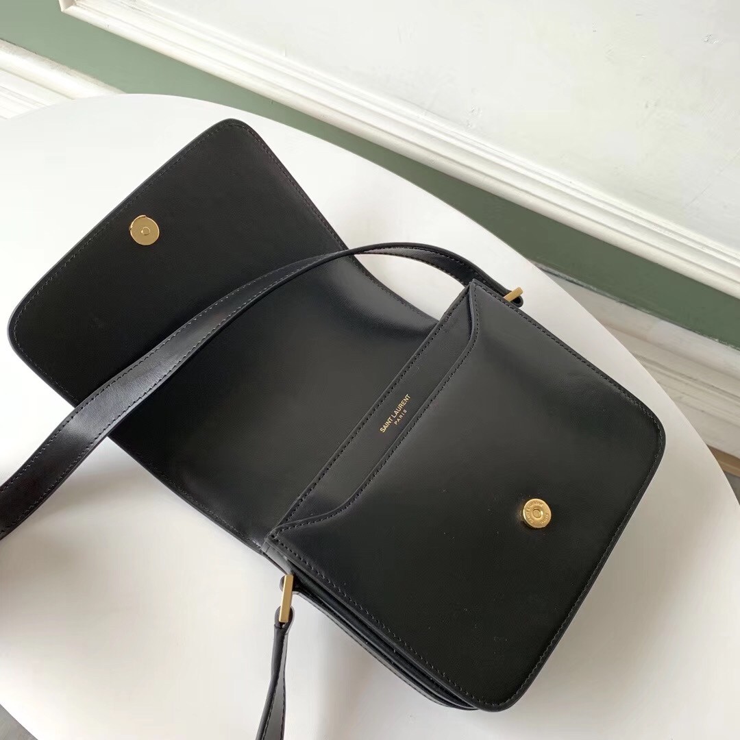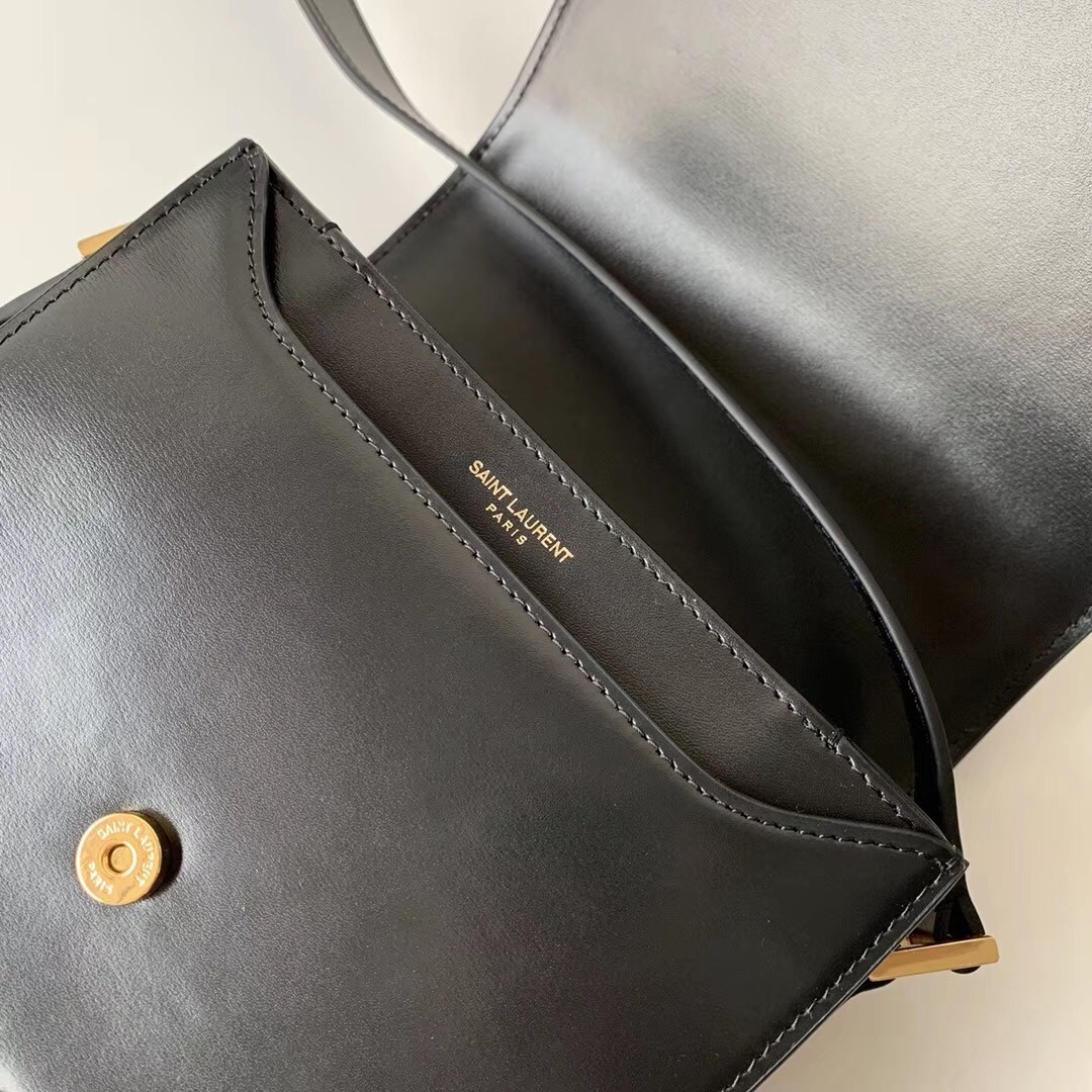 – Front flap decorated with a YSL-embossed medallion