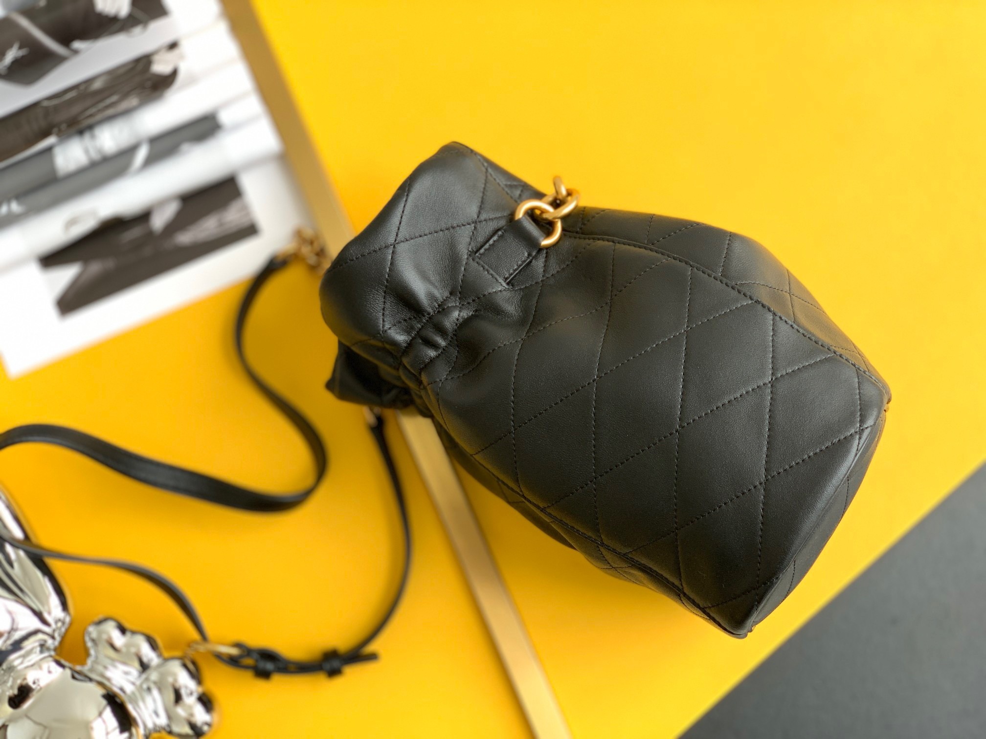 Saint Laurent Le Maillon Hook Bucket Bag In Black Lambskin