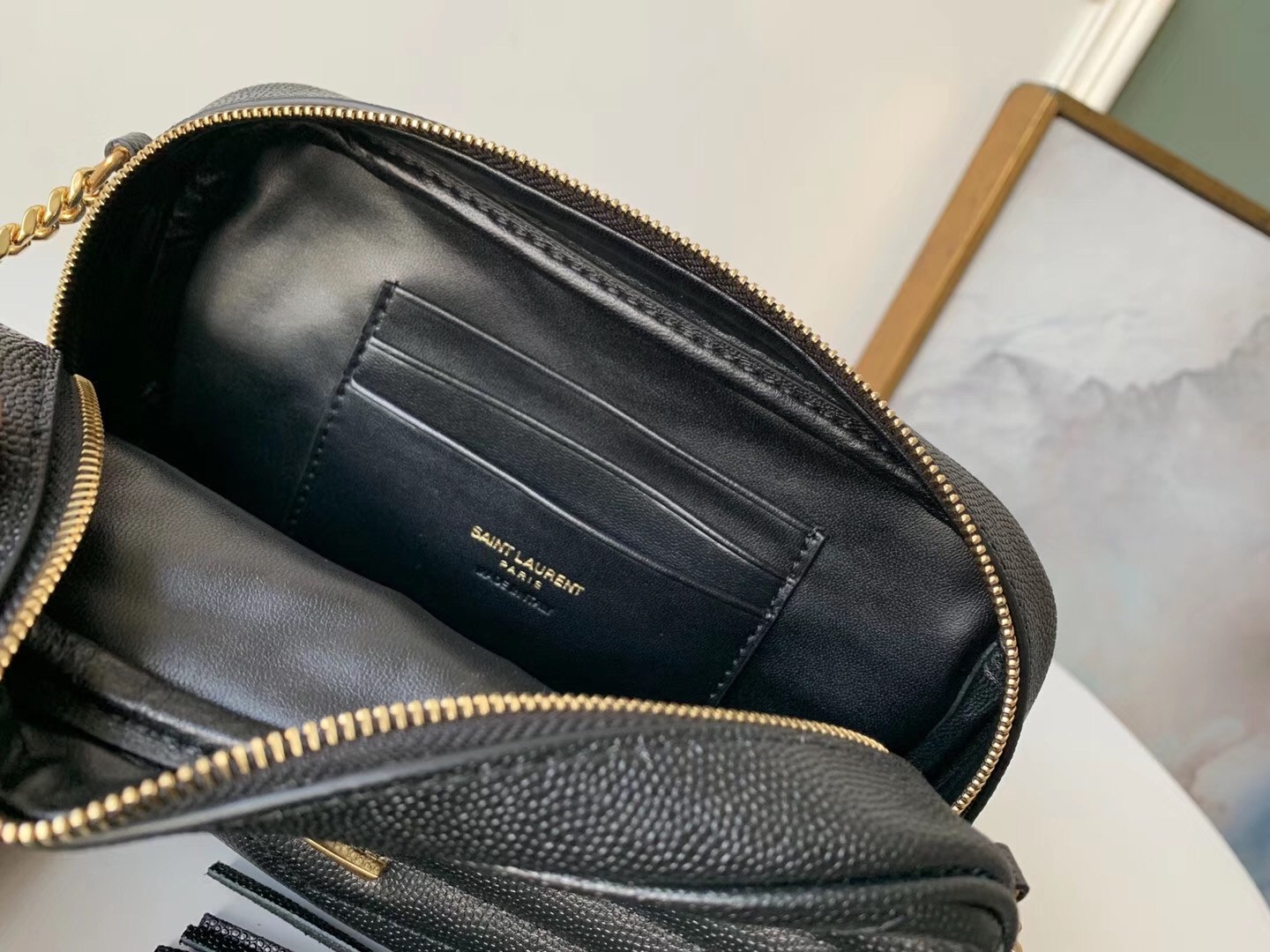 – Tassel with a Saint Laurent-engraved ID plate
