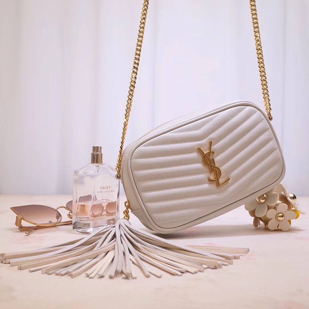 Saint Laurent Lou Mini Bag In White Grained Leather