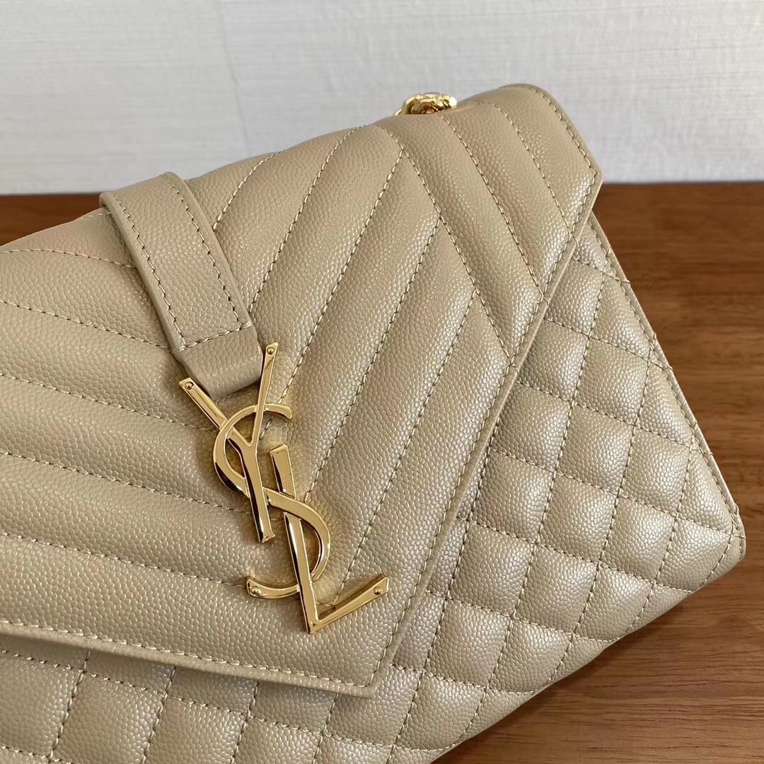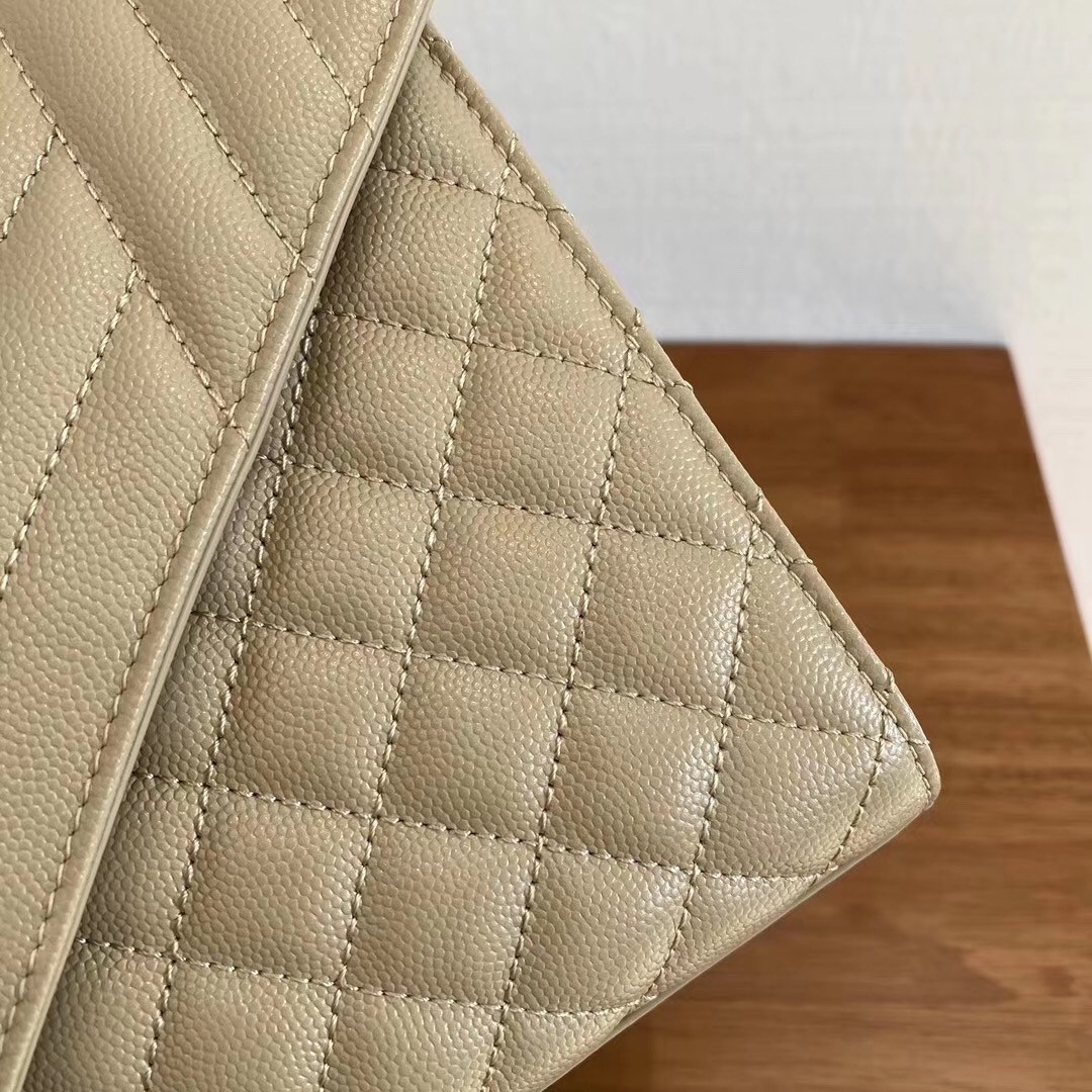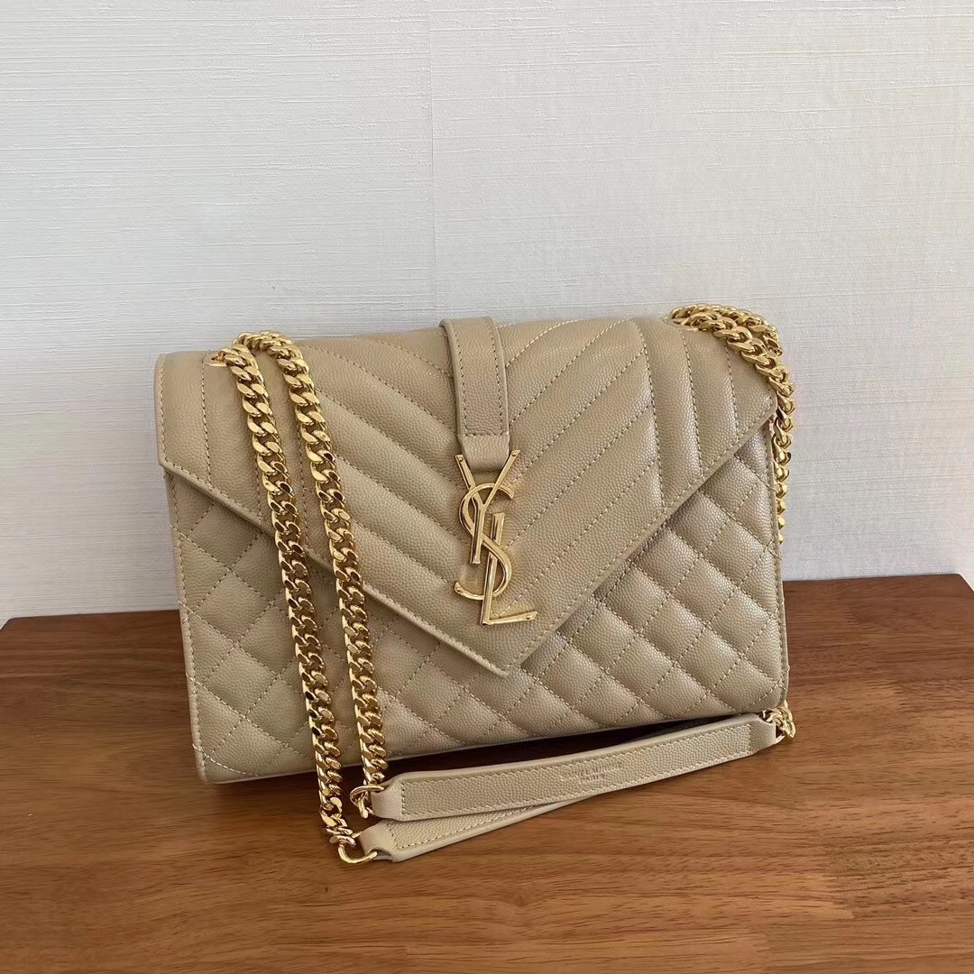 Saint Laurent Medium Envelope Bag In Beige Grained Leather