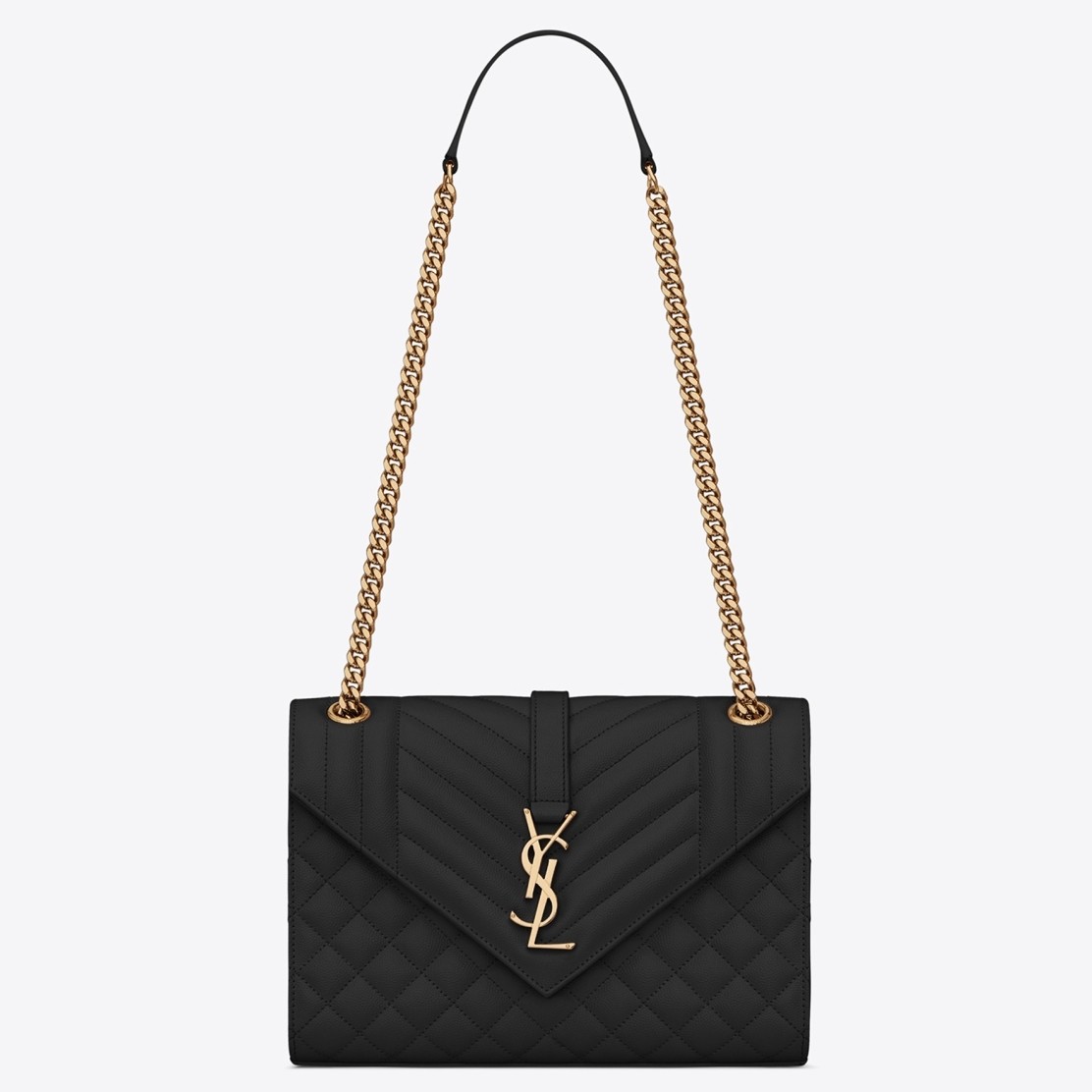 Saint Laurent Medium Envelope Bag In Black Grained Leather