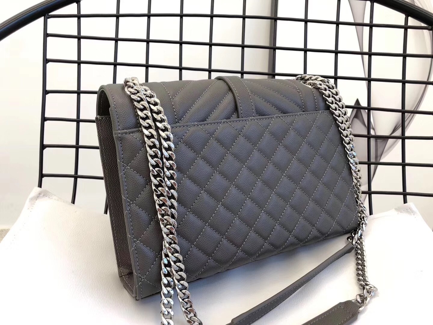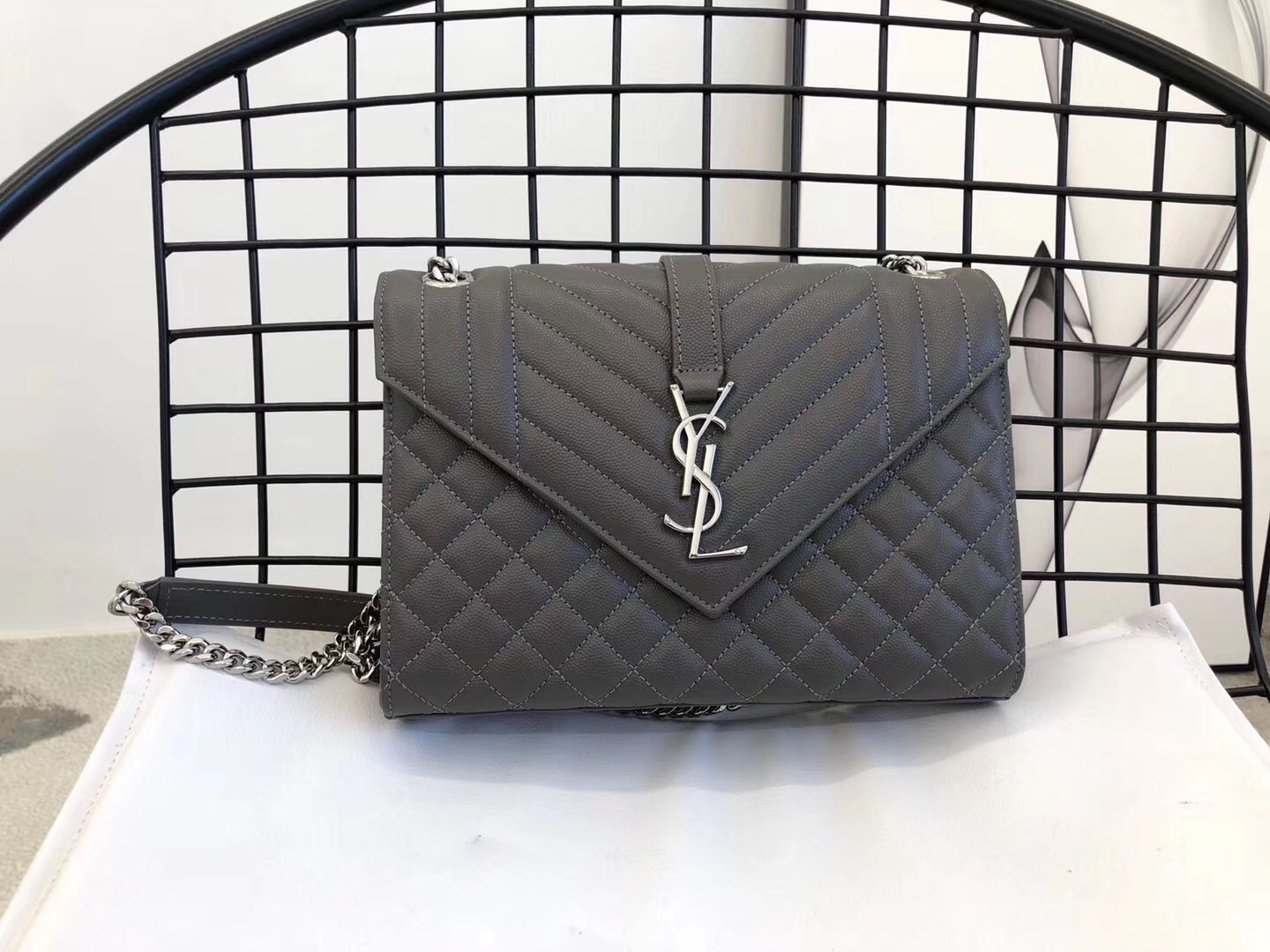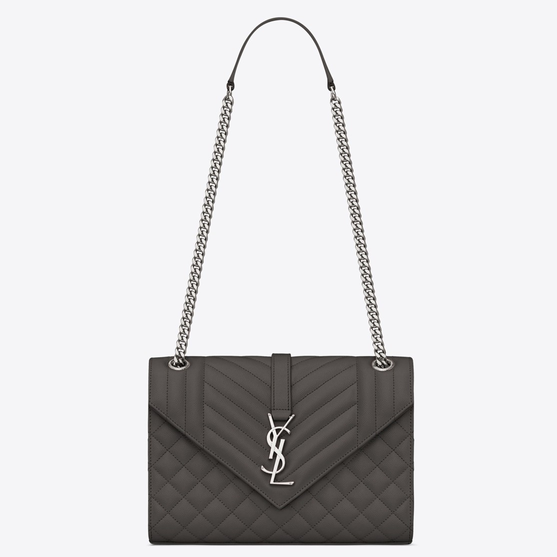 Saint Laurent Medium Envelope Bag In Grey Grained Leather