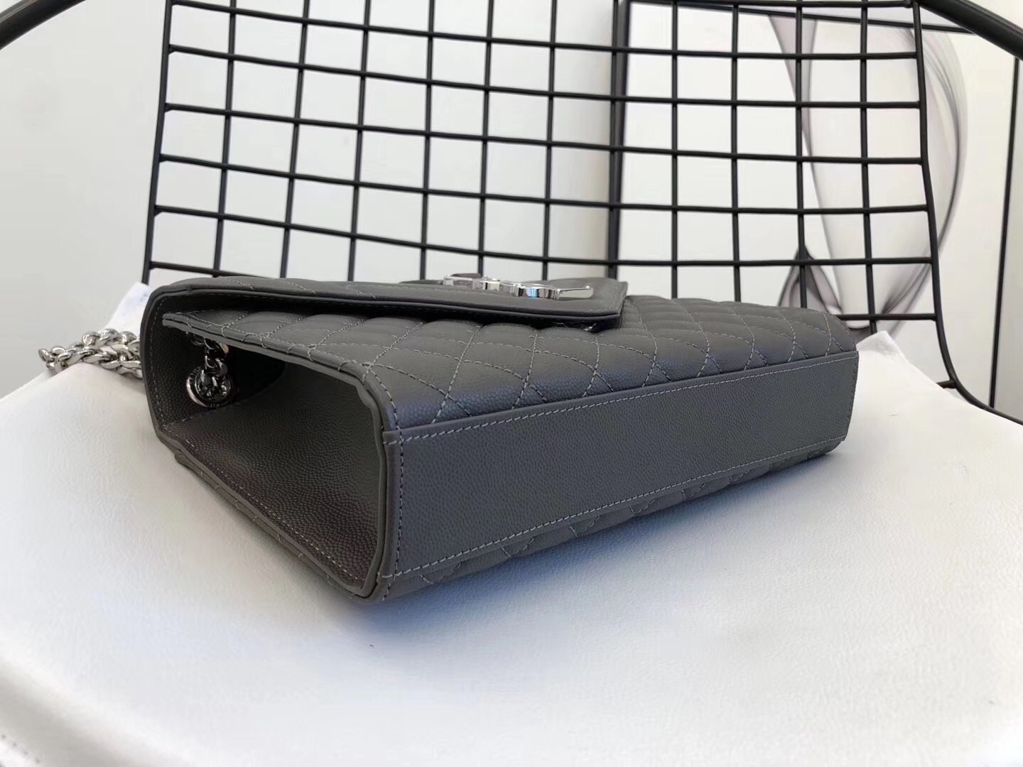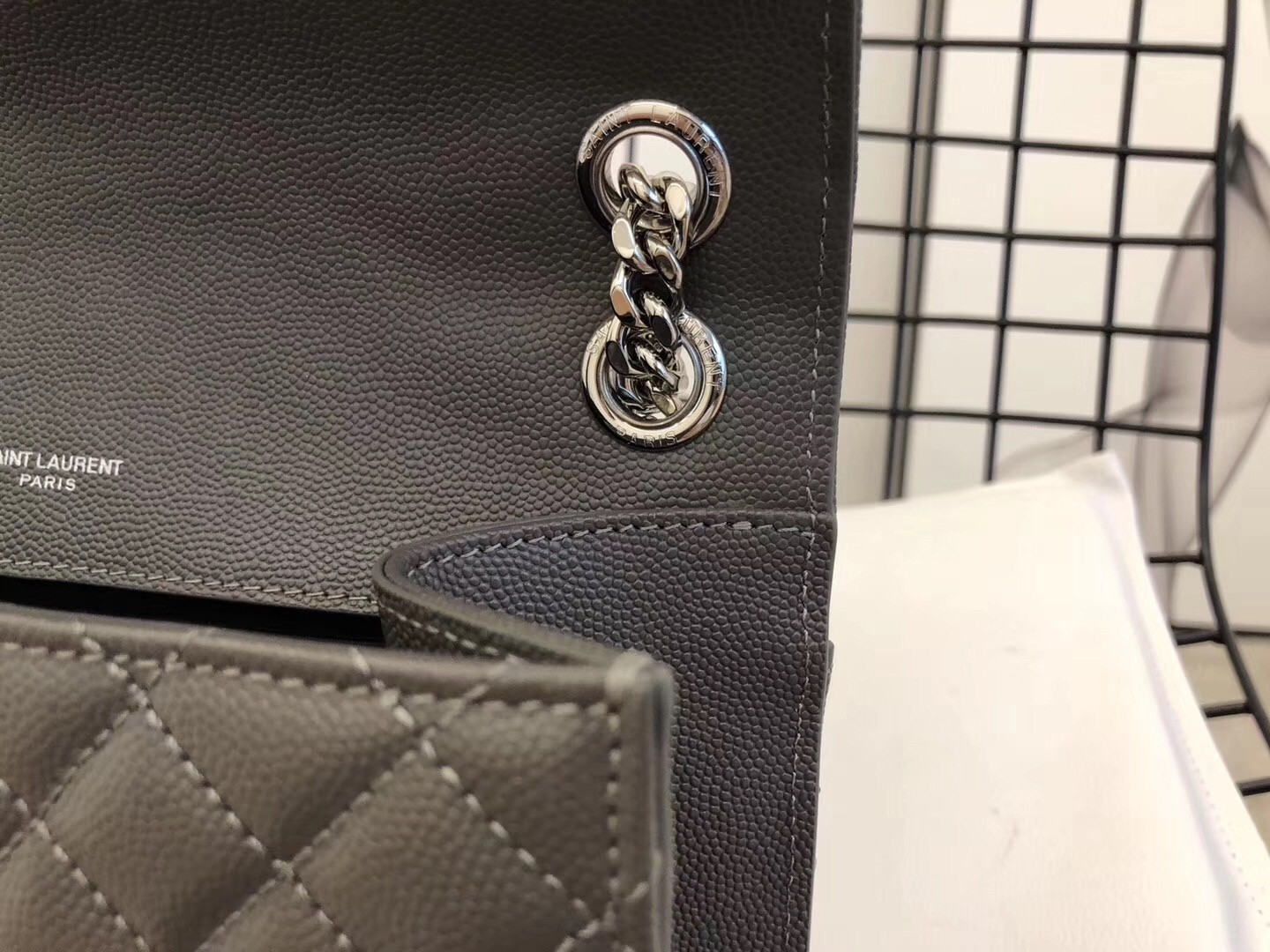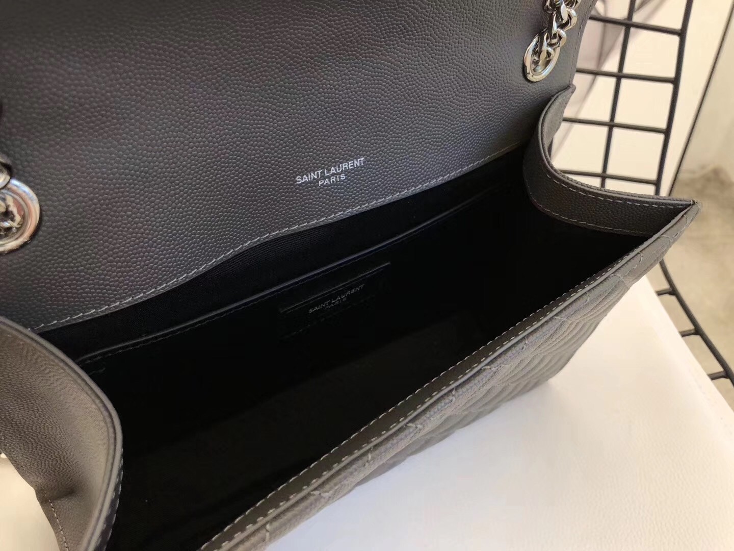 Saint Laurent Medium Envelope Bag In Grey Grained Leather