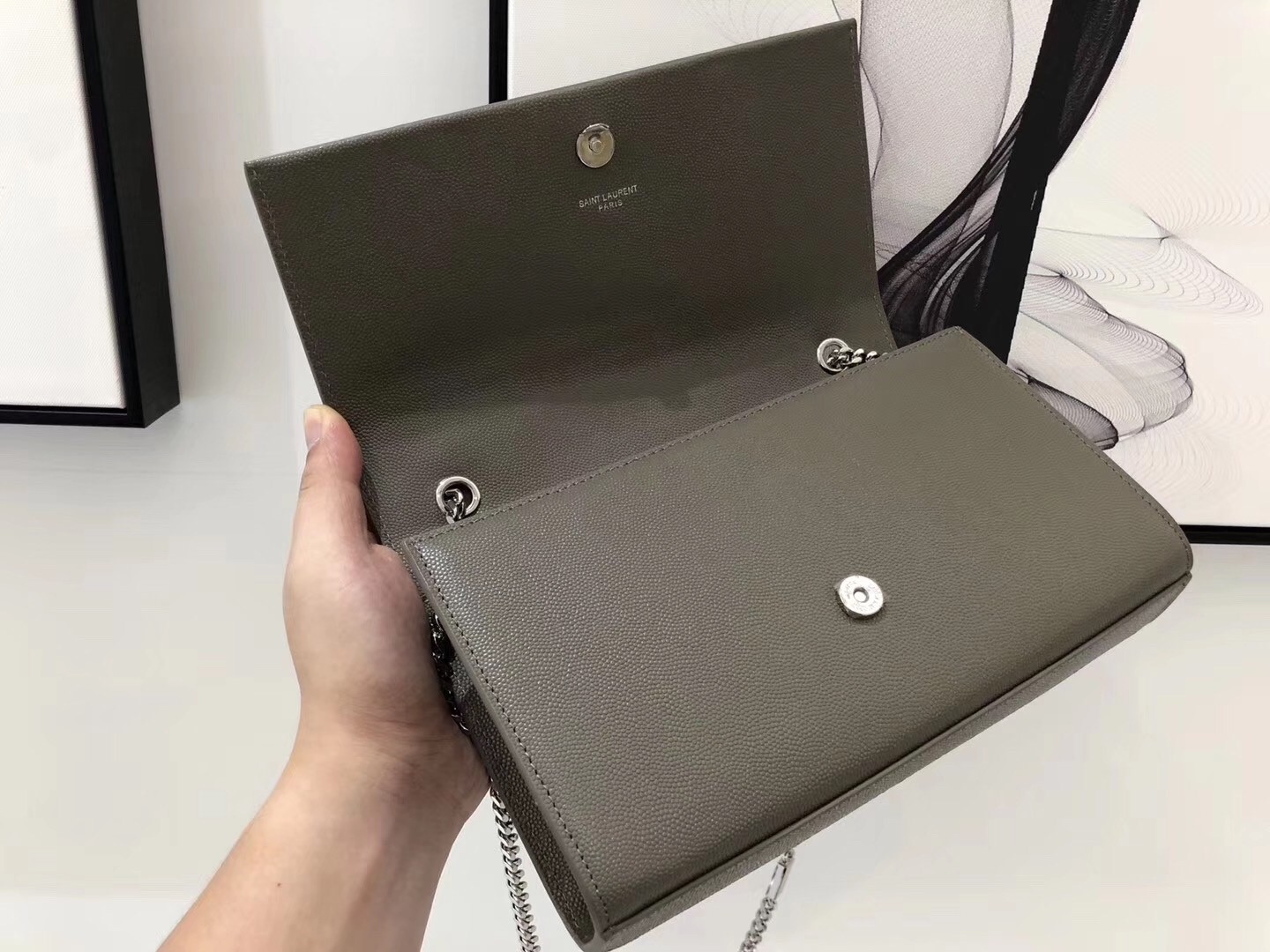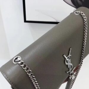 Saint Laurent Medium Kate Bag With Tassel In Grey Grained Leather