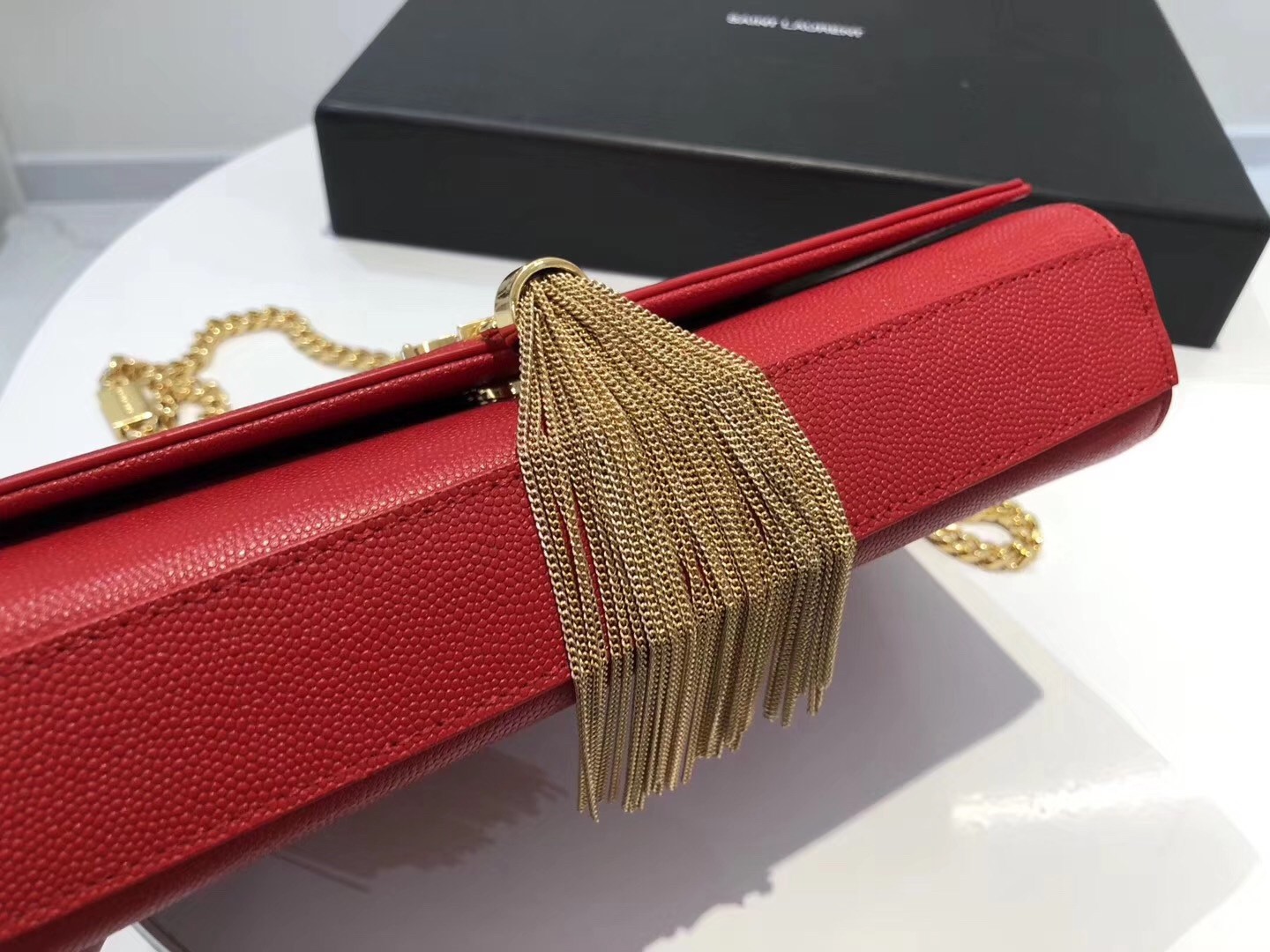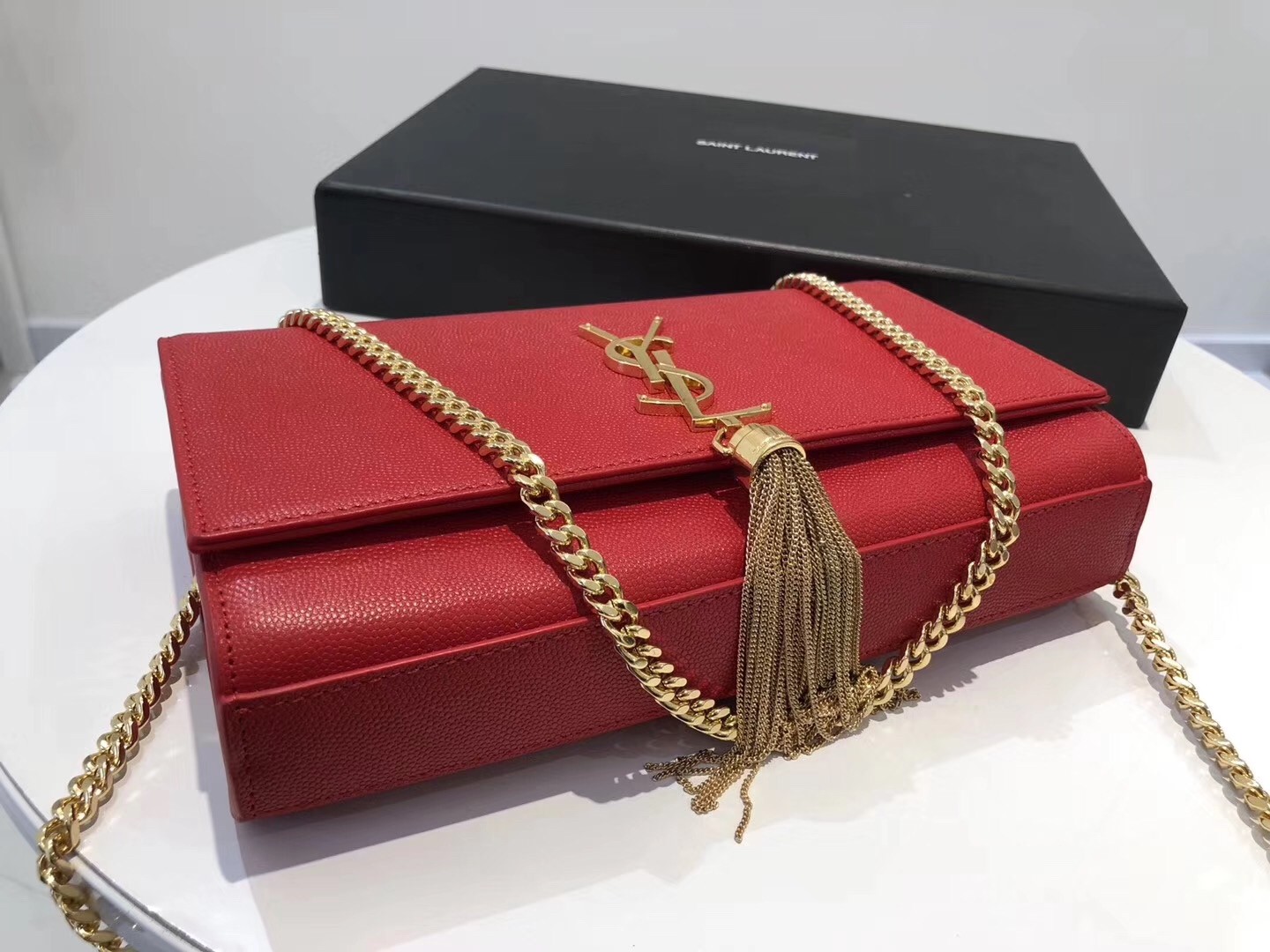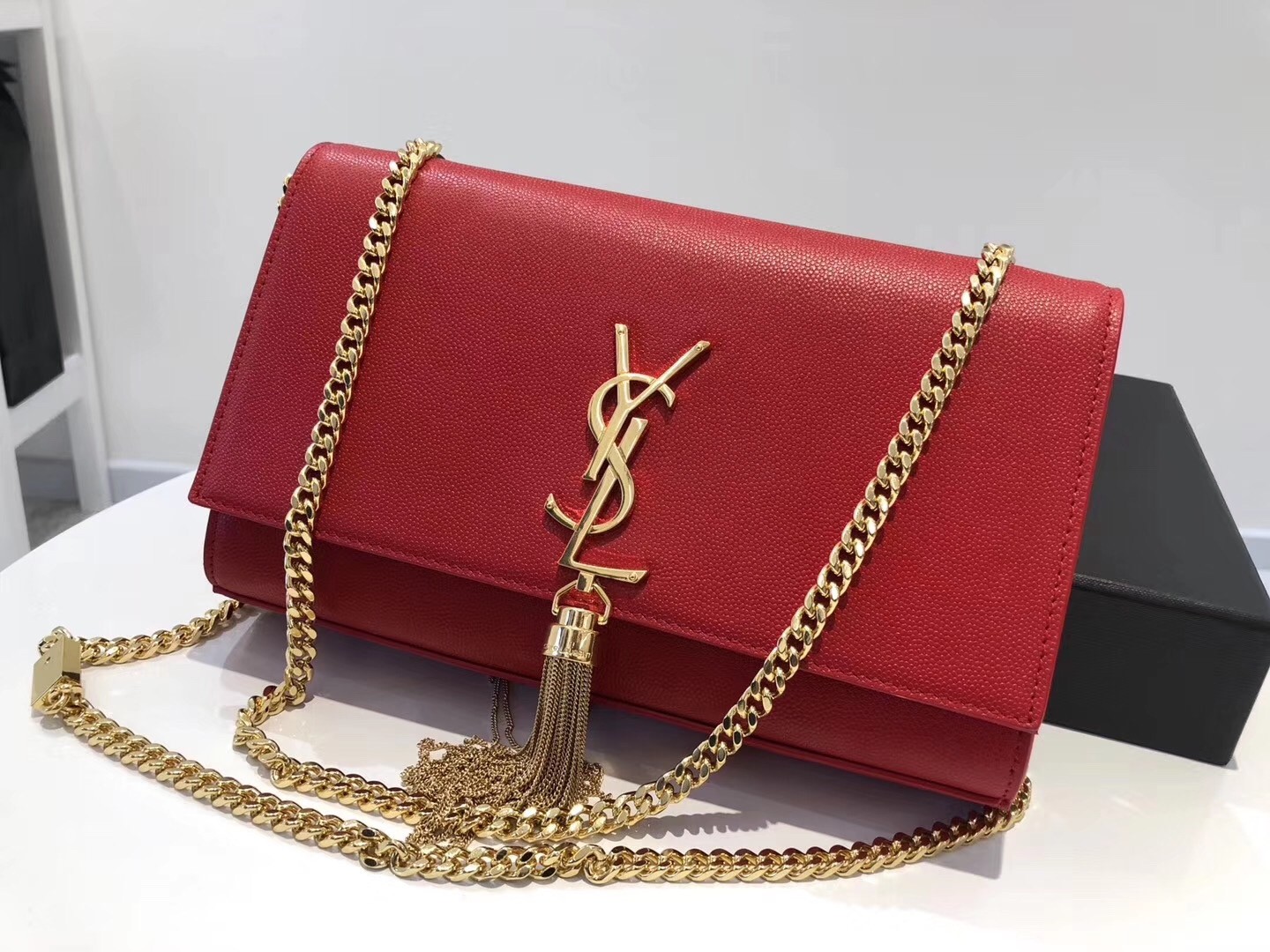 Saint Laurent Medium Kate Bag With Tassel In Red Grained Leather