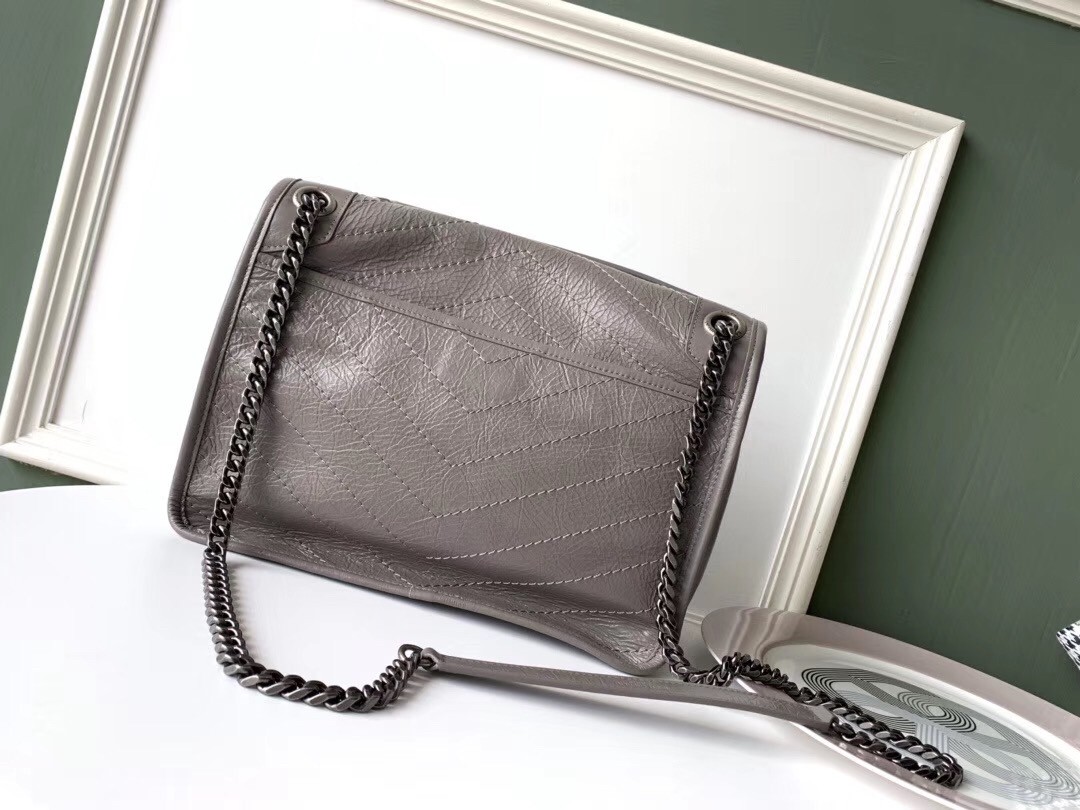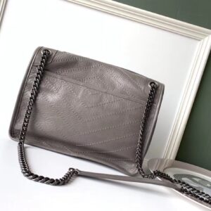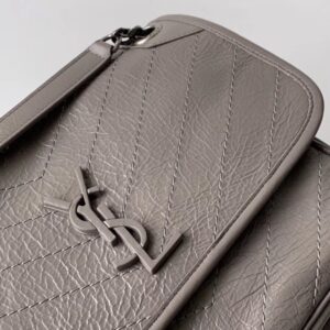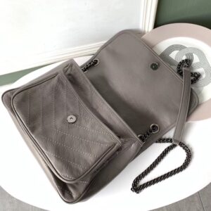 – One central compartment, one inside pocket, one zippered pocket, one open pocket in back, and one pocket under flap