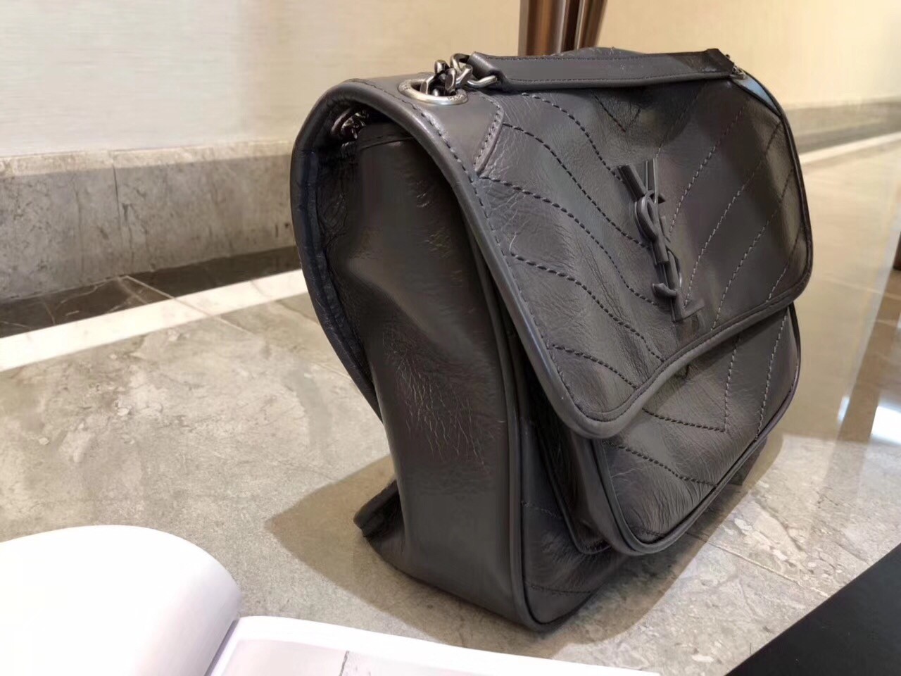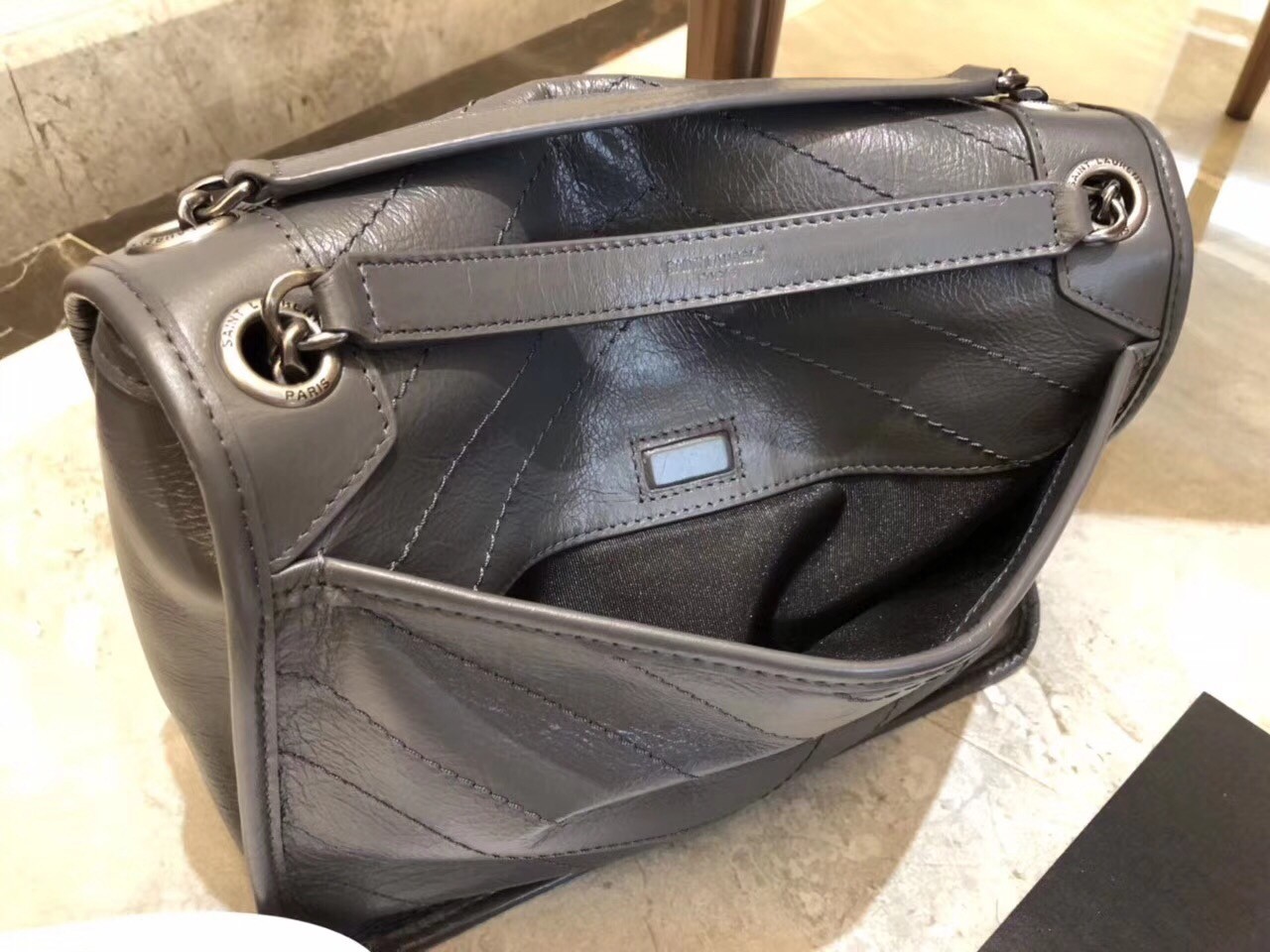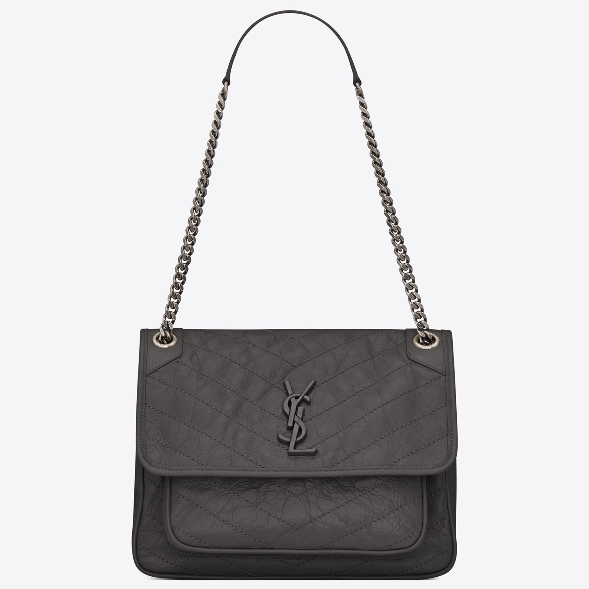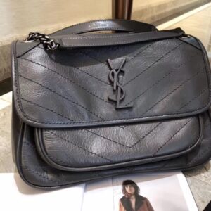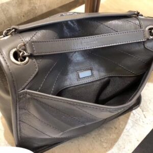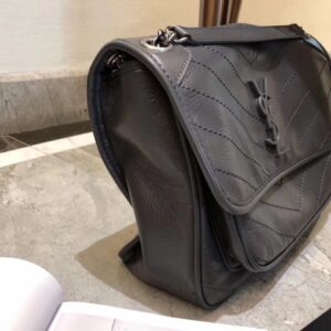 – One central compartment, one inside pocket, one zippered pocket, one open pocket in back, and one pocket under flap