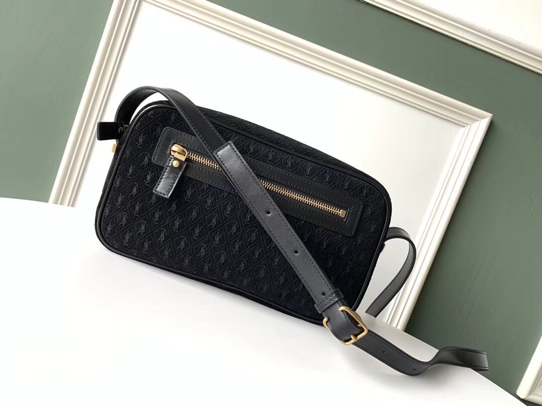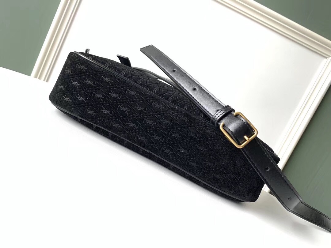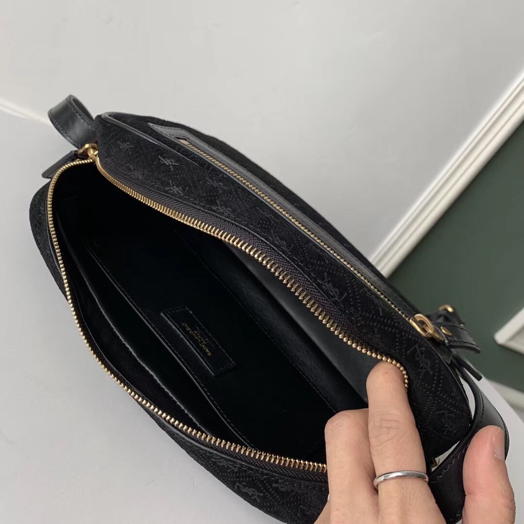Saint Laurent Monogram All Over Camera Bag In Black Suede