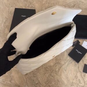 Saint Laurent Sade Puffer Envelope Clutch In White Lambskin