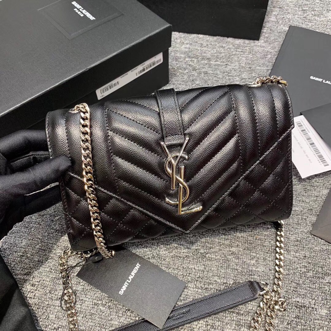 Saint Laurent Small Envelope Bag In Noir Grained Leather