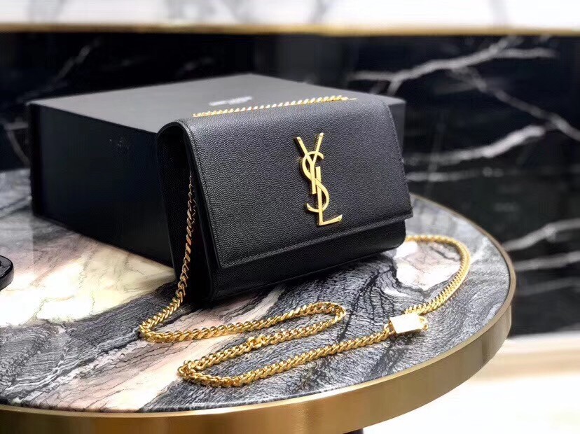 Saint Laurent Small Kate Bag In Black Grained Leather