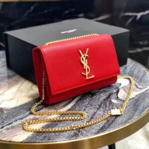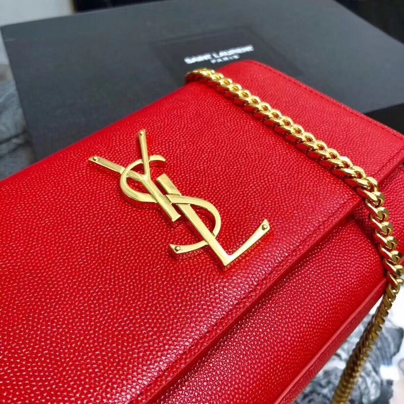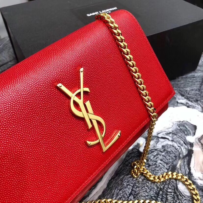 Saint Laurent Small Kate Bag In Red Grained Leather