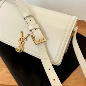 – Front flap and pivoting metal YSL closure