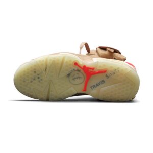 Following on the heels of the coveted ‘Olive’ colorway from 2019, the Travis Scott x Air Jordan 6 Retro ‘British Khaki’ reunites Jordan Brand with the Houston rapper. The upper is crafted with suede and canvas, accented with Bright Crimson details. The stash pouch makes a repeat appearance on the lateral collar, while new zippered detailing is added to the medial side. Mismatched Nike Air and Cactus Jack branding adorns the heel of the left and right shoe, with additional graphics on the midsole, outsole, tongue and lace lock.