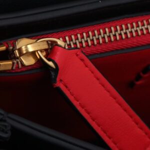 – Interior: three fold-out compartments and one red zipper pocket