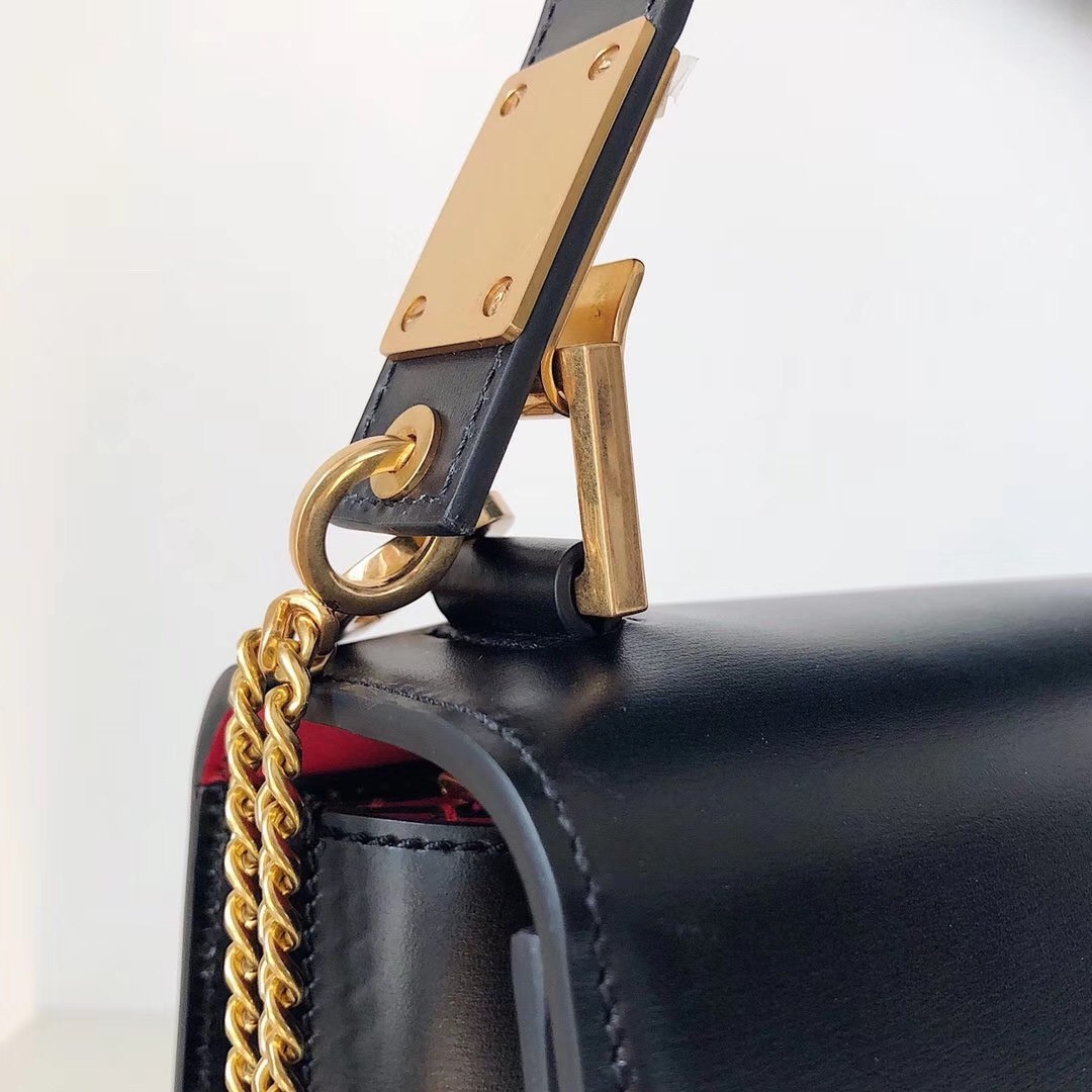– Leather shoulder strap with adjustable chain