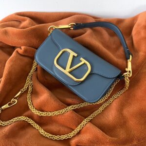 Valentino Loco Small Shoulder Bag In Blue Calfskin