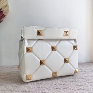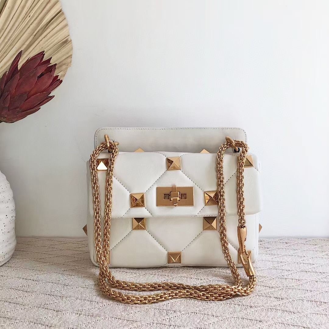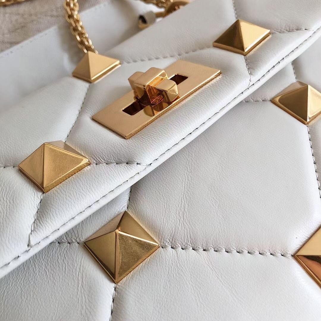 Valentino Medium Roman Stud Chain Bag In White Nappa