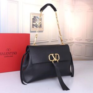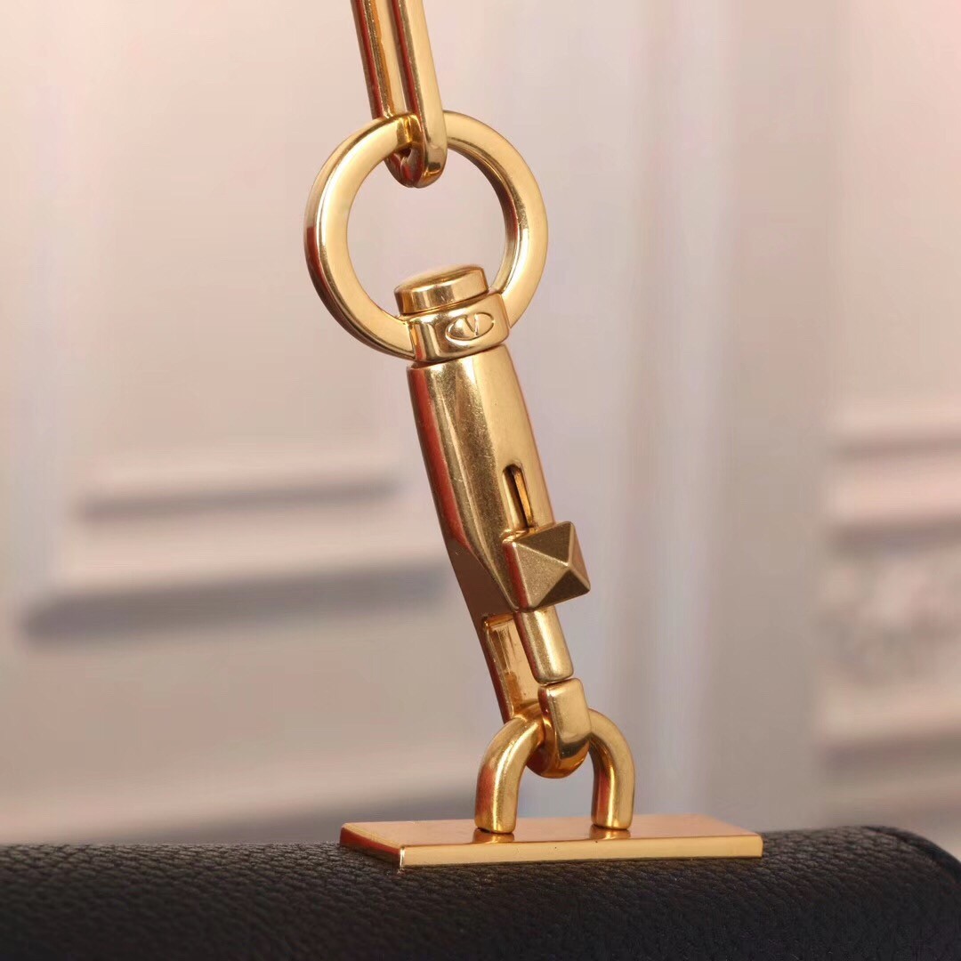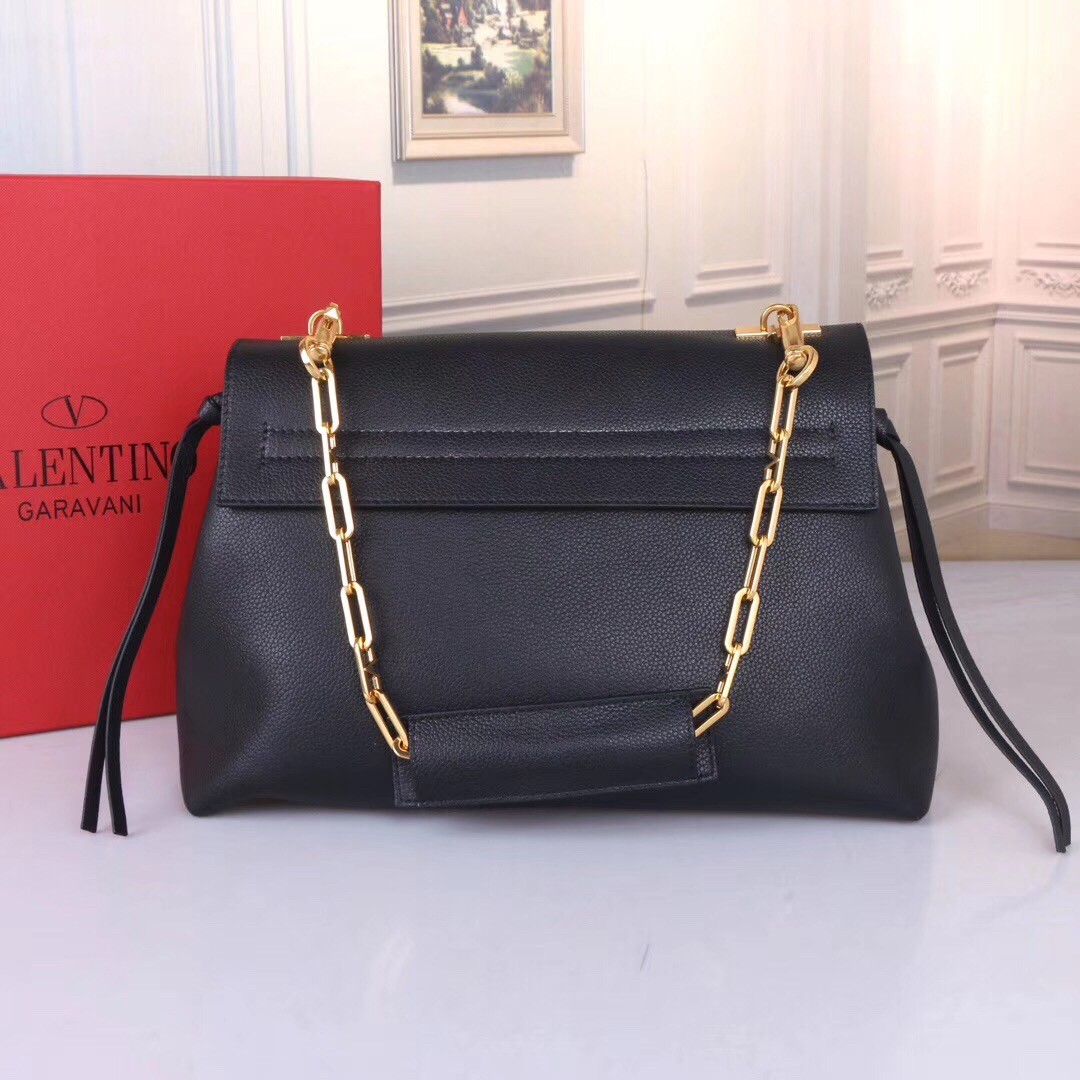 Valentino Medium VRing Chain Bag In Black Grainy Calfskin
