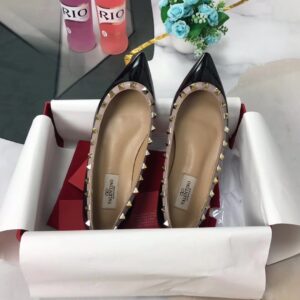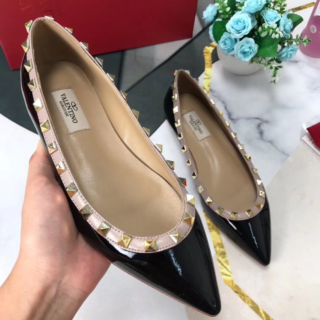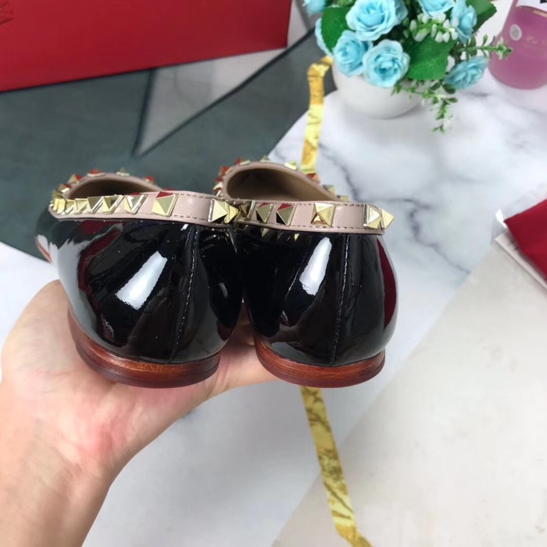 Valentino Rockstud Ballet Flats In Black Patent Leather