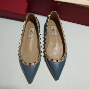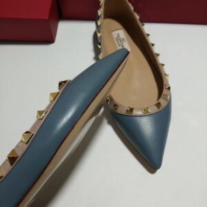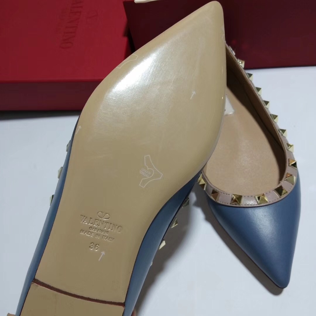 Valentino Rockstud Ballet Flats In Blue Calfskin