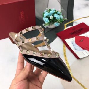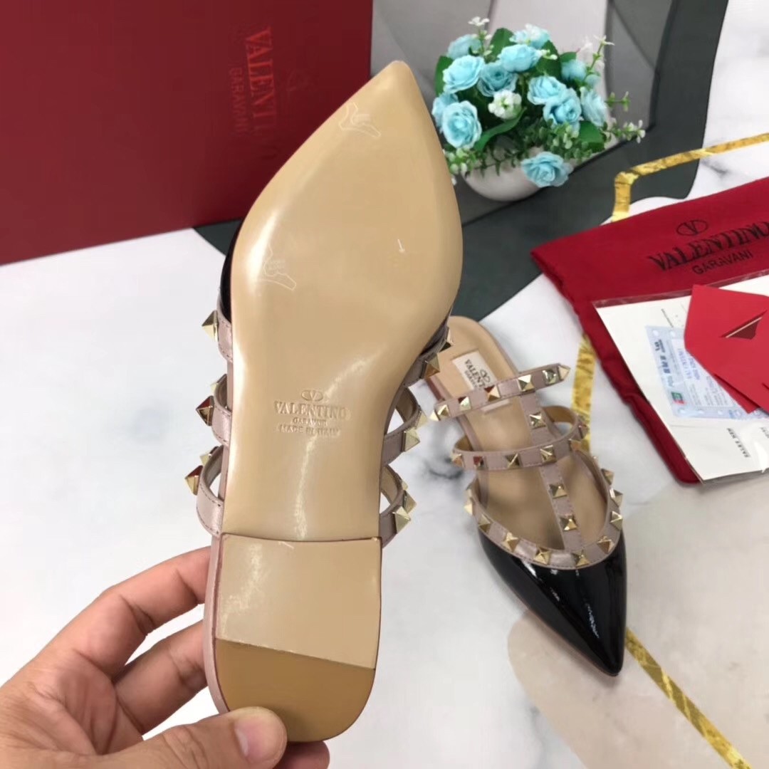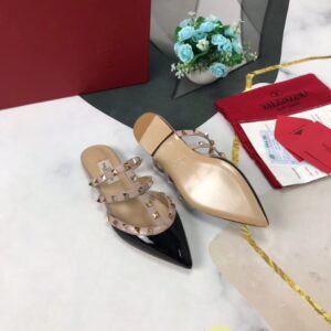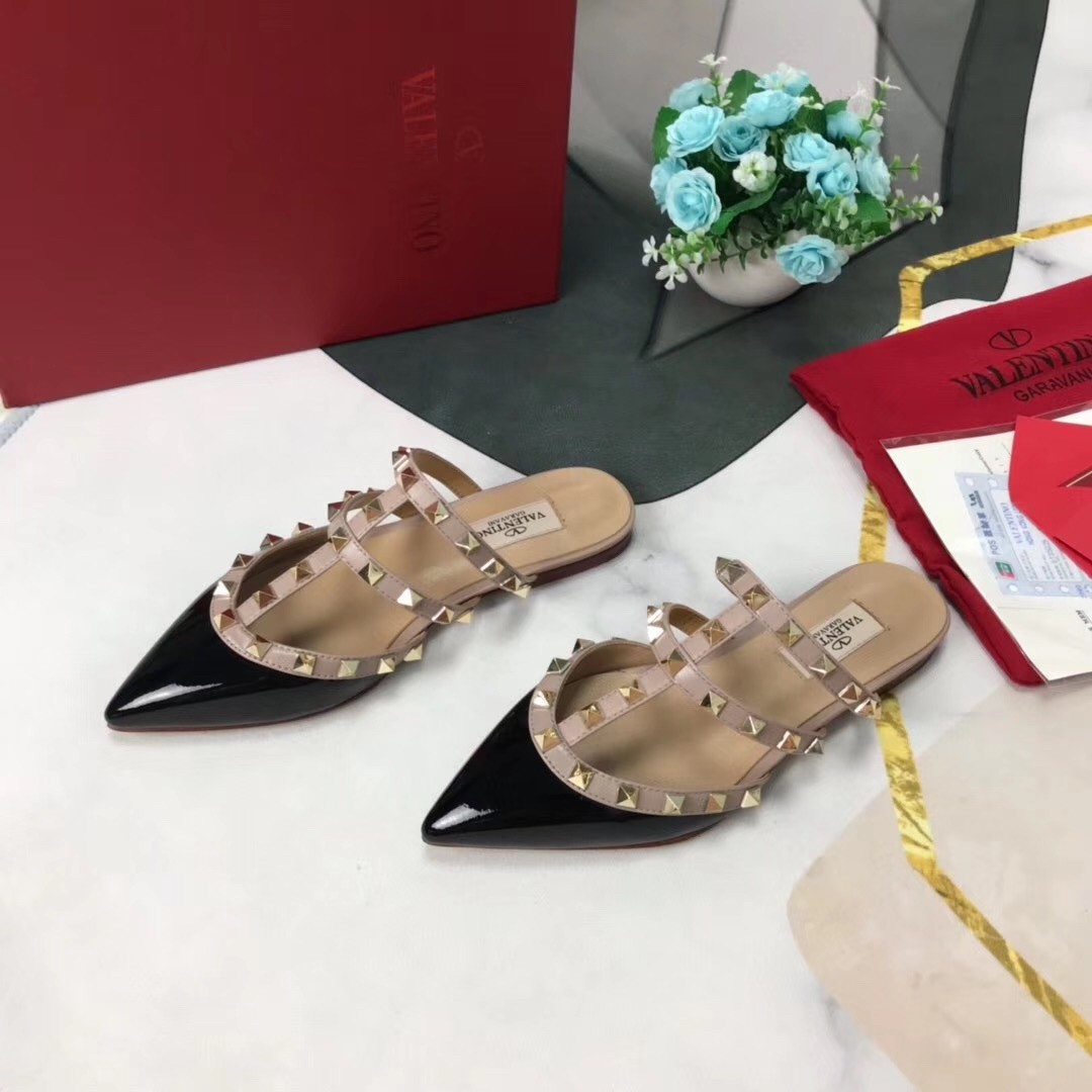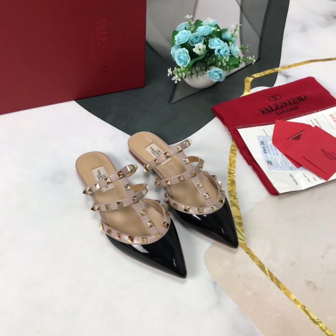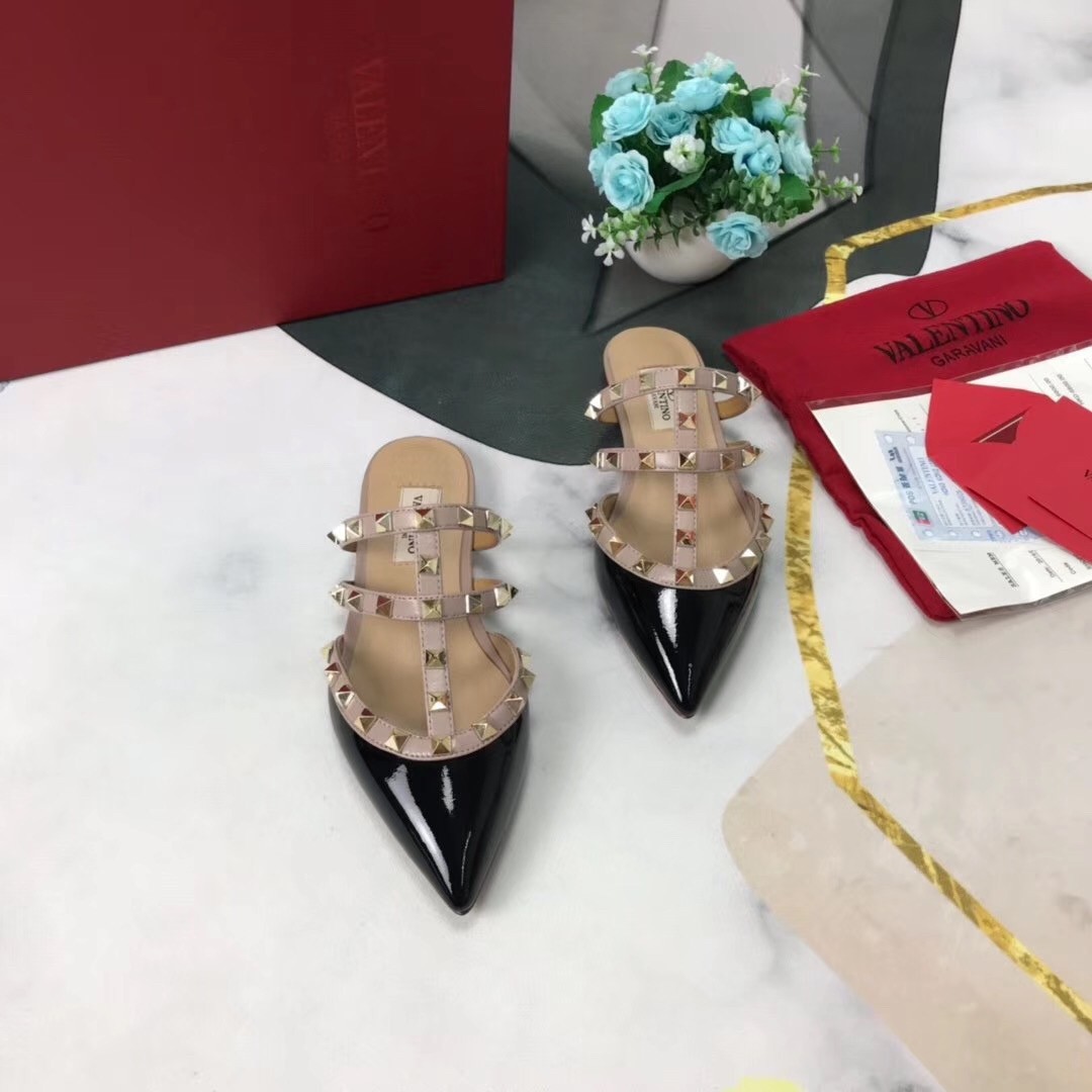 Valentino Rockstud Flat Mules In Black Patent Leather